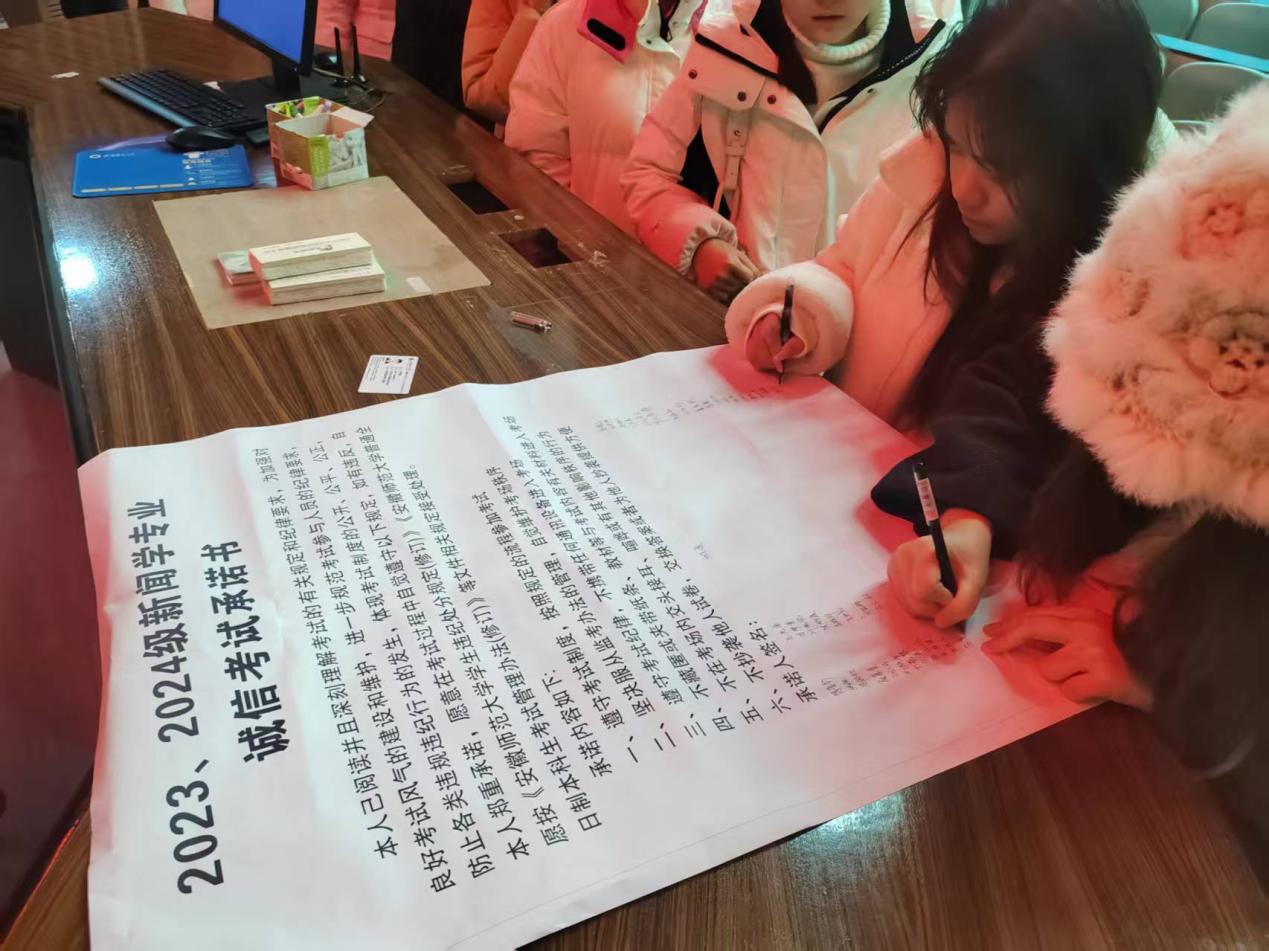 最后同学们有序签署《2023、2024级新闻学专业诚信考试承诺书》,承诺诚信应考。(文/周超梅 图/黄佳慧)