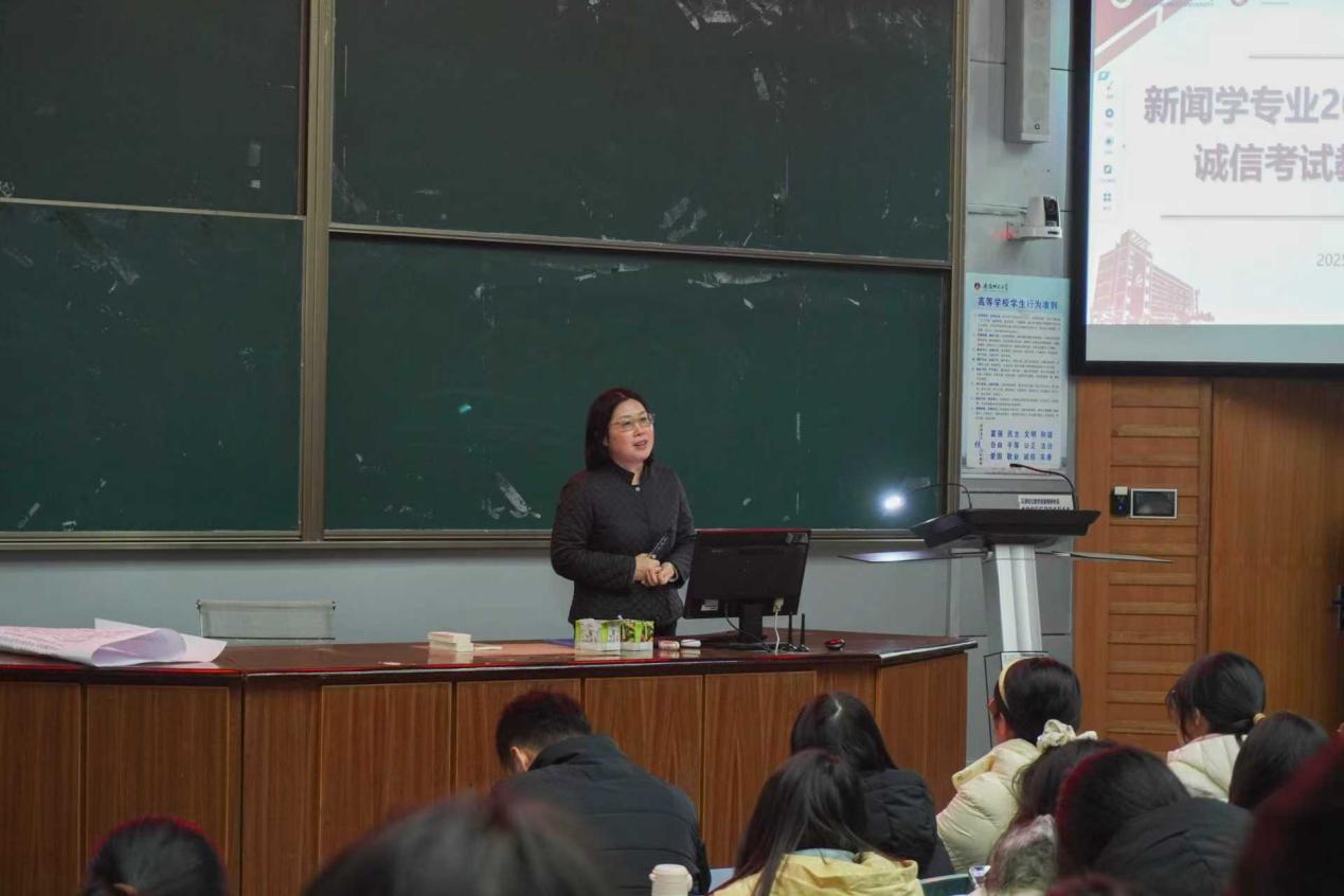 12月24日下午,新闻学专业2023级、2024级于行知楼一号楼105教室召开诚信考试教育主题班会。此次班会由辅导员郭锦怡主讲,bat365在线中国登录入口执行院长马梅、辅导员马星宇出席并发言,2023级、2024级新闻学全体同学参会。