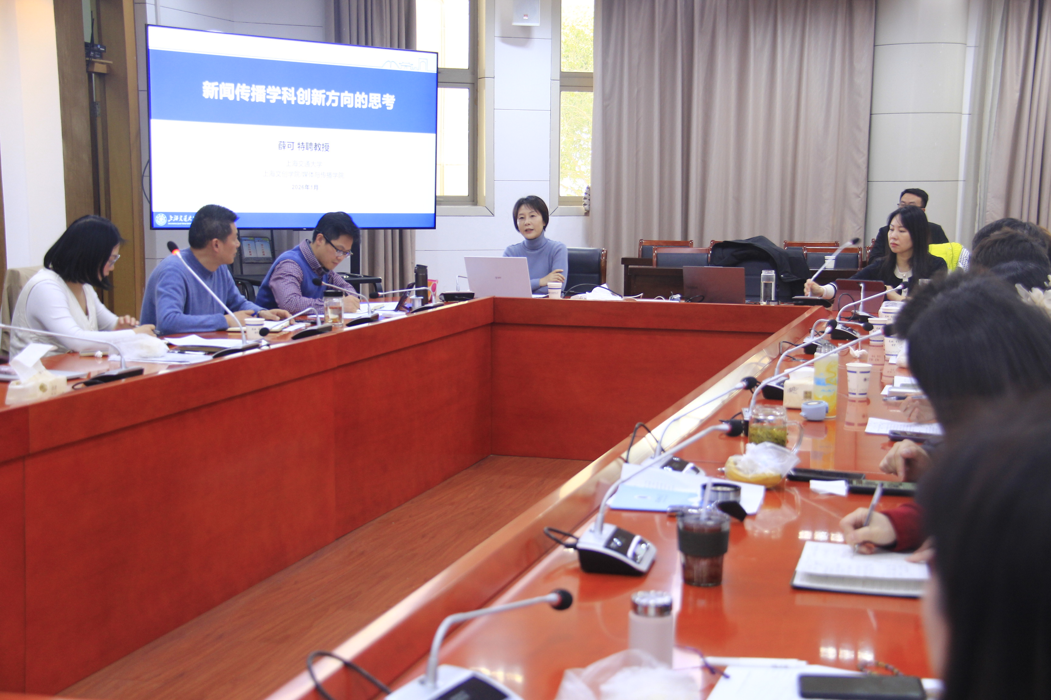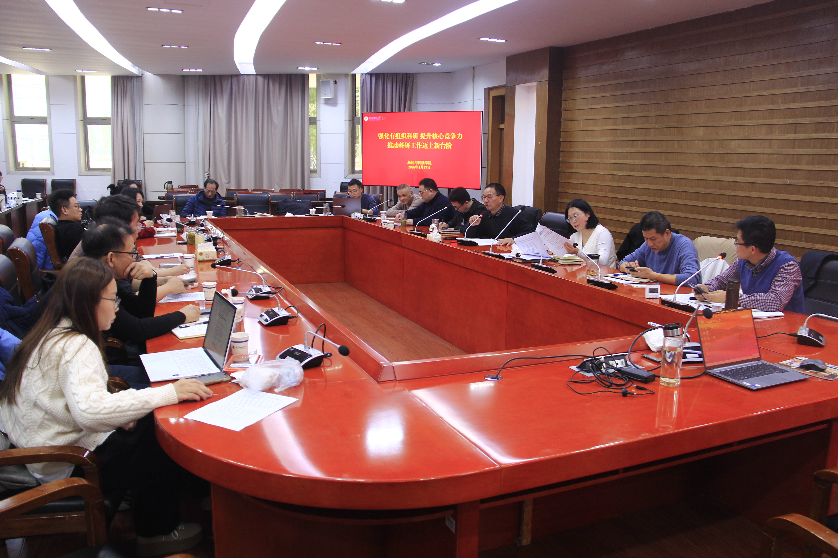锚定有组织的科研,赋能学术新提升。科研工作务虚会上,特邀上海交通大学国家级人才薛可教授作关于科研创新的专题辅导报告,为学院科研工作注入前沿视角与启发,并与参会教师充分交流。接着,大家围绕“有组织的科研”推进、科研团队合力与学科特色形成、科研管理服务机制优化、科研与社会服务协同、国家级项目申报激励与培育等核心议题畅所欲言、集思广益。