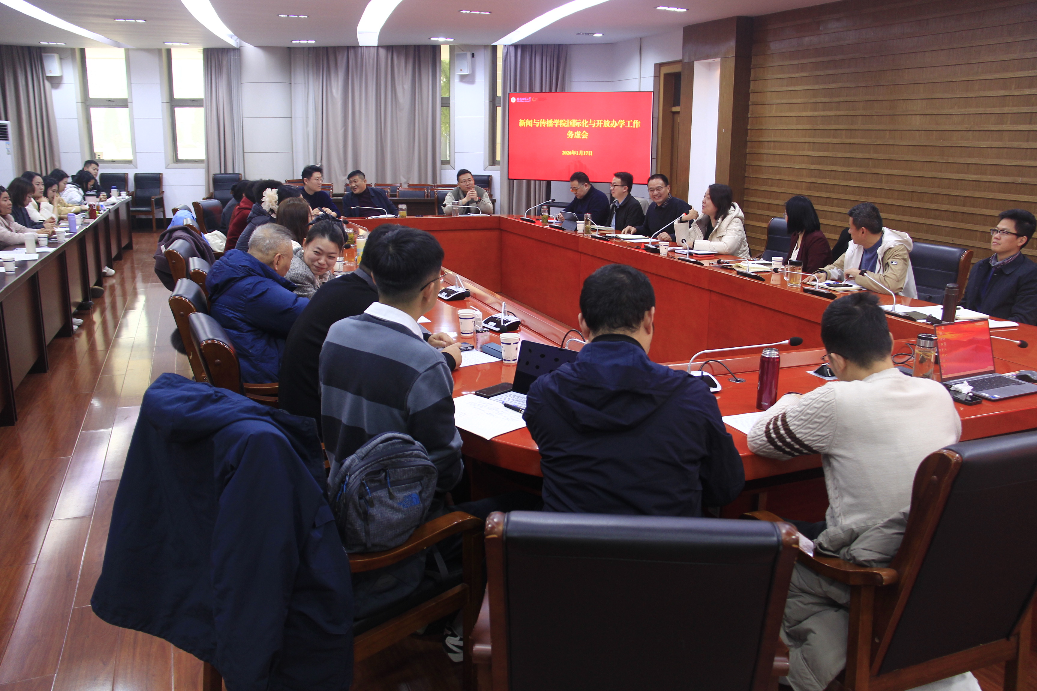 本网讯(bat365在线中国登录入口)1月17日,bat365在线中国登录入口聚焦学院发展关键领域,于圆形报告厅一楼会议室召开三场专题务虚会,围绕国际化与开放办学、社会服务与校友、科研发展与创新三大主题深入研讨、凝聚共识,系统谋划学院未来发展新路径。学院党政领导班子成员、专业负责人、学位点负责人、骨干教师、党支部书记及行政教辅人员参会。