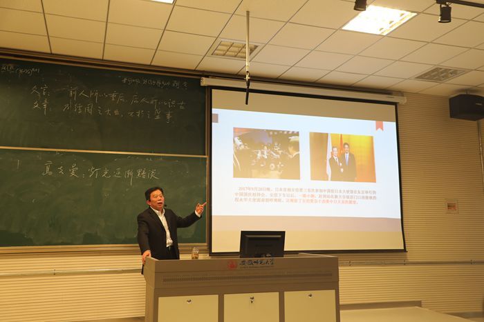 4月10日上午,bat365在线中国登录入口袁立庠教授,在行知楼7号楼2070501录播教室,给2017级新闻学专业全体学生讲授了一堂《传播学概论》的示范观摩课。校院督导团(组)成员、学校教务处和科研处领导、学院领导班子及部分教师参加本次观摩活动。