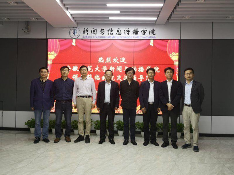 在武汉期间,杨柏岭、张师帅一行还参观了华中科技大学新闻与信息传播学院与武汉大学bat365在线中国登录入口的融媒体实验室、演播室、广告实验室以及新闻与传播评论杂志社编辑部,双方就融媒时代的实验室建设深入交换了意见。