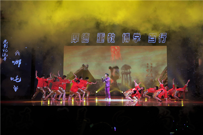 对标编播评管,培养社会课堂。学院播音与主持艺术专业的同学们倾情再现新传学子们深入各地实践调研的故事,展示《未来传媒人》的风采。伴随着朗诵者优美的语调,节目不仅充分体现了学院鲜明的专业特色和学科建设水平,同时将学院特色与学生发展紧密结合,彰显了新传人应有的使命与担当。流金岁月,影视经典伴随青春成长;豆蔻年华,新剧力作传播时代美好。当悠扬悦耳的音乐传来,灯光变换中,浓浓的国漫风仿佛轻纱般萦绕着整个舞台,《大鱼》和《哪吒》的表演者为观众营造出极具中国韵味的梦幻意境。歌曲串烧《光影记流年》用一首首动人旋律重温儿时的美妙回忆,也带观众重温了近年来影视新作中的高光时刻。重温伟人事迹,不只感动;领悟英雄精神,从心出发。朗诵节目《等待》透过一个平凡妻子二十八年的默默守候,彰显“两弹元勋”邓稼先舍小家为大家的崇高形象。为履行国家使命而牺牲小我、隐姓埋名的邓稼先值得被永远铭记,为了国家奉献到倾尽所有、奋斗到至死方休,挺起了坚强的民族脊梁,是他用生命的灯盏点亮了中华民族的强国之梦。