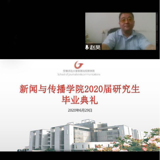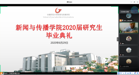 骊歌一曲响,情谊难相忘;挥手道珍重,昂首笑骄阳。6月29日上午10点,bat365在线中国登录入口2020届研究生毕业典礼在腾讯会议“云进行”,bat365在线中国登录入口党委书记张师帅博士、执行院长、博士生导师杨柏岭教授、副院长、博士生导师沈正赋教授、马梅教授,研究生导师以及全体2020届研究毕业生参加了本次毕业典礼,毕业典礼由科研与研究生副院长赵昊教授主持。