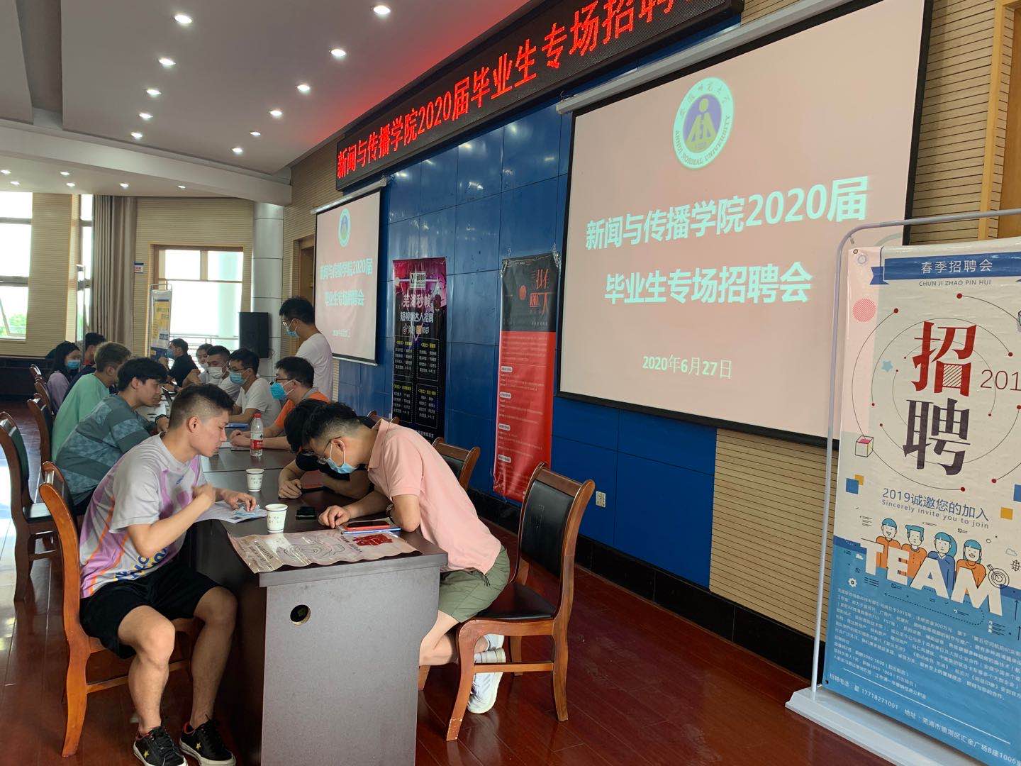 6月27日下午,学院于圆形报告厅举办线下专场招聘会。本次招聘会共有安徽新美迪文化传媒有限公司、安徽新安爱房咨询有限公司、芜湖秒帧文化传媒有限公司、义和传媒有限公司、芜湖青丝信息技术有限公司和芜湖擎苍信息科技有限公司等公司前来招聘,需求岗位包括采编记者、新媒体运营、摄影师、设计师等多个传媒相关岗位,对应聘者的能力需求也与bat365在线中国登录入口各专业培养方案高度一致,公司负责人对现场报名的同学逐个进行面试,现场井然有序,同学们积极参与,气氛活跃。当天,张师帅、杨柏岭来到招聘展位前,认真了解了参会单位招聘需求和招聘情况,并热心询问前来应聘毕业生的就业情况,为其提供相关的应聘指导。本次招聘会严格按照学校疫情防控的相关规定部署布局,整个招聘会场遵循单方向进出、入会体温监测、相邻用人单位相距两米等方式加强疫情防控,做到万无一失。