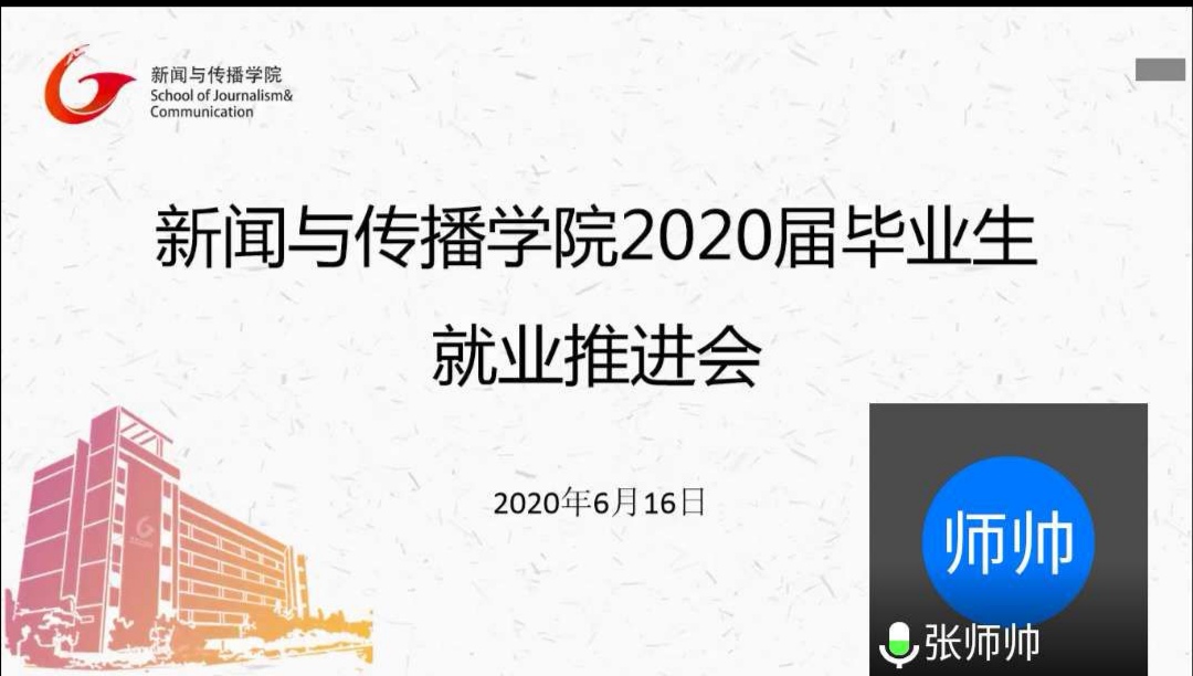 6月16日晚,院党委书记张师帅、院长杨柏岭、副院长赵昊,各专业主任、毕业班辅导员在腾讯会议上线上召开2020届毕业生就业推进会。会上杨柏岭提出三点,一是要认识到位,要认识到学生就业对专业发展、建设的重要性;二是我们做什么,要全员参与、齐抓共管,要引导学生先就业再择业,要将就业率贯穿人才培养全过程;三是几点建议,抓住就业黄金周,全力以赴集中推进就业,梳理未就业同学动态名单,针对性开展工作,一对一沟通,院班子、专业主任、专业教师、辅导员要主动与学生交心。张师帅总结到,毕业生就业是民生工程,是专业发展的重要指标,是教育教学的最后一公里,学生就业是衡量专业办学水平的重要考量,各专业要用尽全力抓就业率,同时要抓2021届学生的考研率,对低年级学生进行就业择业教育。会后,各专业主任、辅导员纷纷表示,会做好2020届毕业生的就业工作,加强跟学生的沟通,同时加强对低年级学生的教育,努力将就业贯穿人才培养全过程,服务好学生,建设专业。