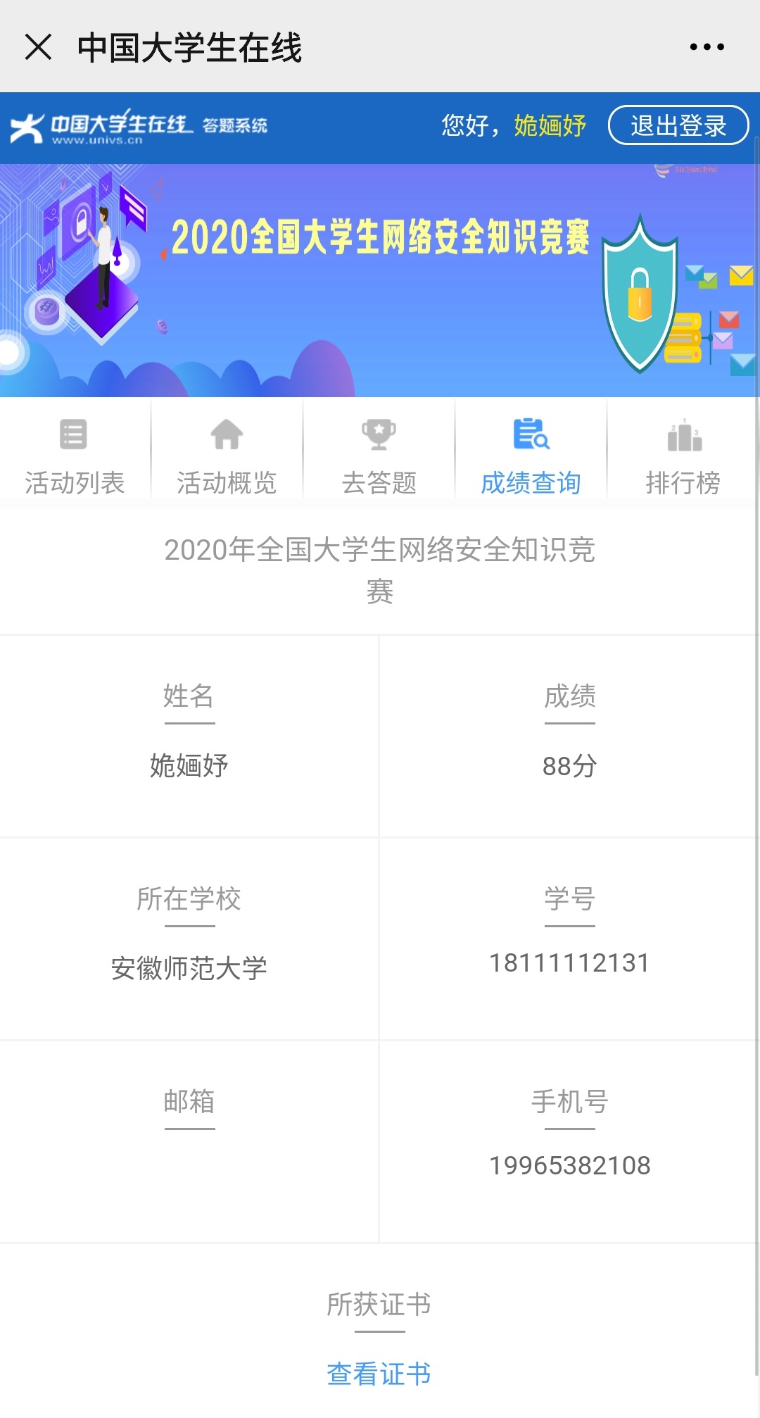 亲身实践,收获感悟与思考。新传学子也积极利用自己的所学技能参与到网络安全周活动中来,通过网络在线答题自我普及网络安全知识,激发学习网络安全知识兴趣,提升网络安全防护技能。2018级网新专业积极开展主题班会并组织相关活动,鼓励大家参与参加全国大学生网络安全知识竞赛,增长见识的同时更是筑牢思想防线。
