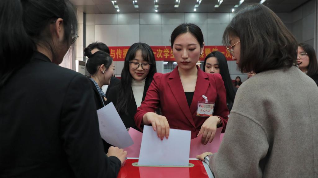 (本网讯 bat365在线中国登录入口 文/毛心如 图/司皓权 许准)为全面开展学院学生工作,进一步对接校学生代表大会工作安排,bat365在线中国登录入口于11月8号下午在行知楼2010307召开了院第一次学生代表大会、研究生代表大会。院党委副书记宋静,团委书记张雁,院团委副书记、校第一届研代会主席梁嘉及各年级学生代表共同参加本次会议,会议由学生会主席王儒钰主持。