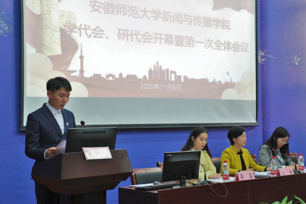 上届学生会主席王玉洁、研究生会主席刘杰分别进行了2019-2020学年工作报告。王玉洁对过去一年的工作进行了总结,分为三个部分。第一,格局时更,使命不改。院学生会对部门人数和框架进行了调整,但是“促学风、抓特色”的工作思路和全心全意为同学们服务的信仰从未改变。第二,形式多变,质量不减。面对多变的局势,院学生会就局势开展了全方位、多类型的活动,同时在各种活动中我们新传人的工作热情、工作质量丝毫未减。第三,人才辈迭,初心不变。院学生会改变的是一个个被记录下来的名字,但永恒的是新传人追求卓越的初心。刘杰从常规工作和不足改进之处两方面对研究生会工作进行了系统、全面的总结和阐述,表示研究生会将带领着研究生们不断积极进取、开拓创新,培养更加优秀、更加全能的新传研究生。
