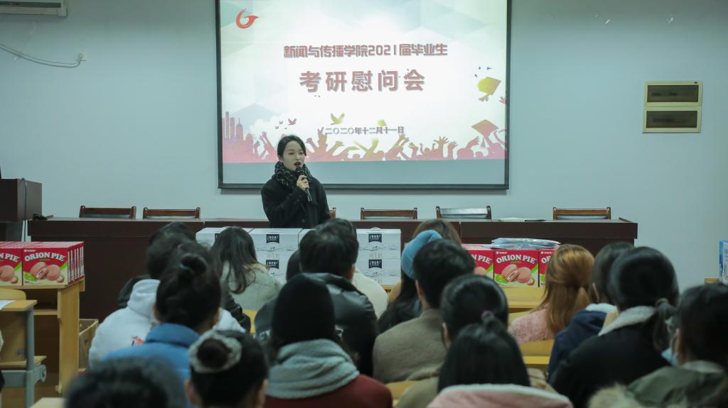 正式开始前,学院为21届考研本科生精心准备了一份暖心的“礼物”——来自十余位已经成功“上岸”在各大高校深造的学长学姐们录制的寄语视频,视频里学长学姐们热情送上考研祝福与期待,影片虽短,却温馨感人,令在场同学深受鼓励,倍感振奋。