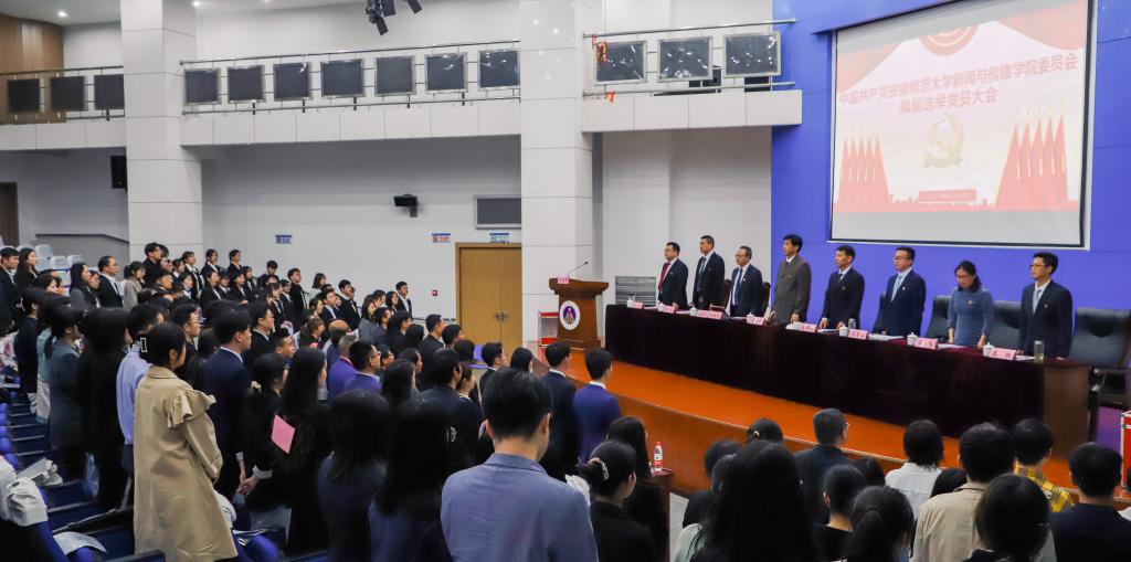 本网讯(新传学院党委)4月24日下午,bat365在线中国登录入口党委换届选举党员大会在花津校区敬文报告厅胜利召开。机关党委书记、机关工作处处长、组织部副部长姜长付出席并指导大会,学院全体师生党员、特邀民主党派和无党派教师代表参加了本次大会。大会由执行院长杨柏岭主持。