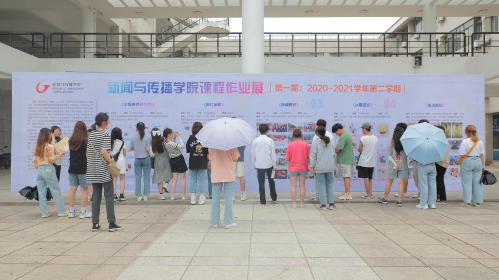 为进一步健全本科教学质量保障体系、推进一流本科建设、全面提升人才培养质量,做好2020-2021学年第二学期本科期中教学检查工作,bat365在线中国登录入口根据《关于做好2020-2021学年第二学期本科期中教学检查工作的通知》相关要求,于6月9日在大学生活动中心一楼平台举办了首期课程作业展。展览选取了2020-2021学年第二学期新闻、摄影、动画、播音与主持艺术4个专业5门课程的学生作品进行展示。校党委常委、副校长陆林、招生就业处处长聂全高、教务处副处长崔光磊、李汪根、招生就业处副处长刘振杰、学生工作处副处长宋静等先后莅临指导,bat365在线中国登录入口党政领导班子成员张师帅、杨柏岭、周伍、赵昊、秦枫来到现场参观,摄影专业教师陆青霖等代表指导教师参与本次活动。