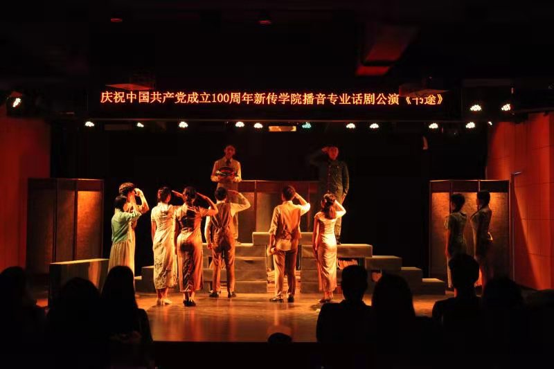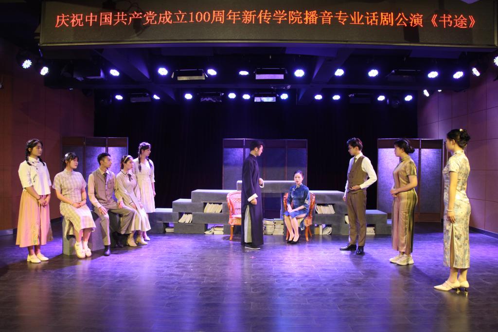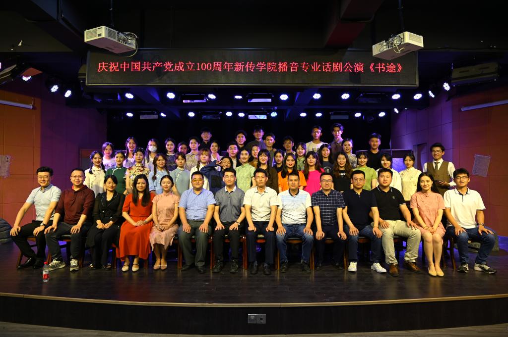 为庆祝建党100周年,为宣传党的光辉历程和丰功伟绩,bat365在线中国登录入口bat365在线中国登录入口2020级播音与主持艺术专业的同学在专业教师纪婉茹的带领下,于6月17日、18日晚在大学生活动中心二楼团委多功能厅开展了原创话剧《书途》的展演。校团委副书记陈骁,院党委书记张师帅、副书记吴青山、副院长周伍、副院长赵昊及播音专业主任邵振奇,专业教师孙炜峰、王霞霞、方圆、王恒乾、高郡隆,辅导员梁嘉、刘熠均到场观看演出并给予指导意见。