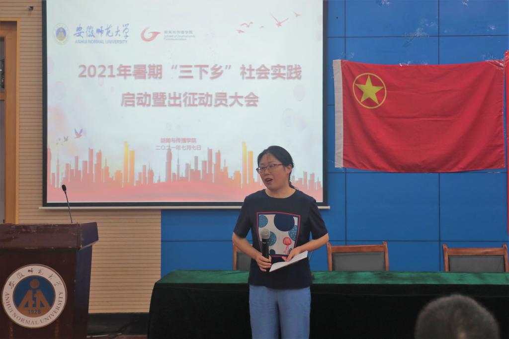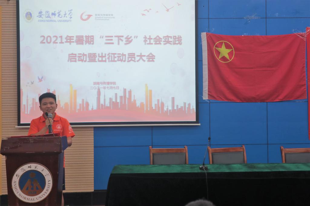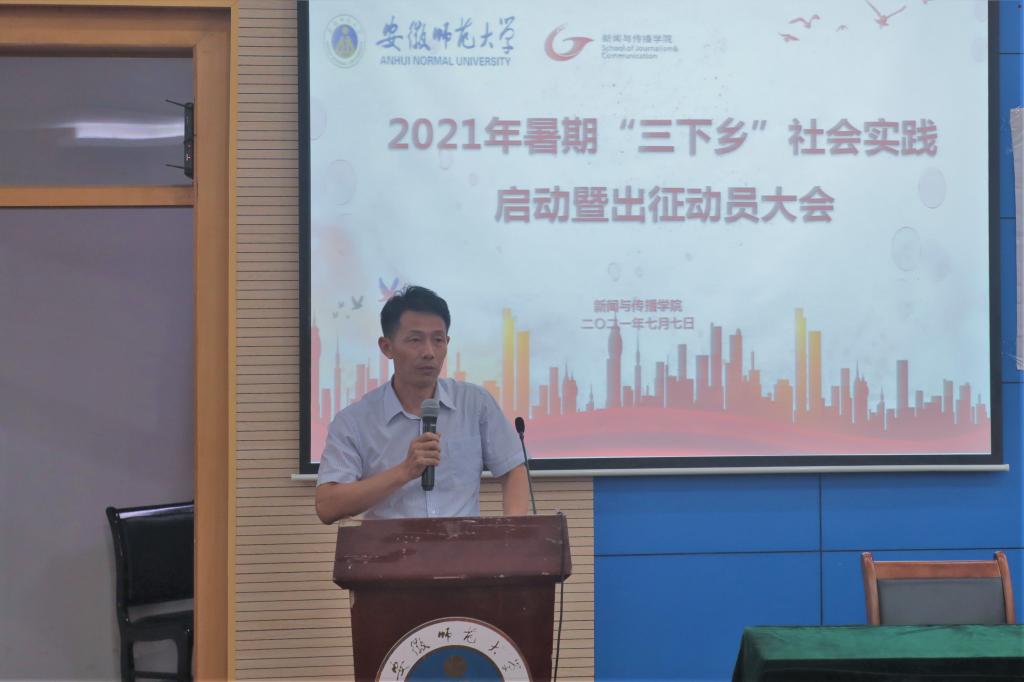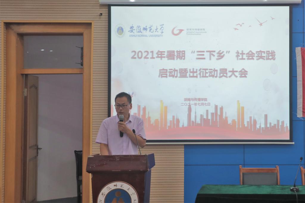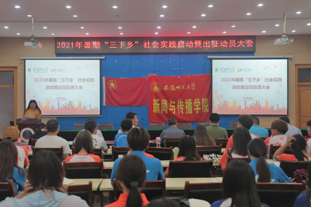 本网讯(文/刘开颜)7月7日下午,bat365在线中国登录入口2021年暑期“三下乡”社会实践启动暨出征动员大会在花津校区会议中心二楼报告厅举行。思政指导教师曹明臣,bat365在线中国登录入口全体院领导,校、院级重点团队指导教师,校级重点团队全体成员和院班级重点团队学生代表参加了会议。会议由bat365在线中国登录入口团委副书记梁嘉主持。