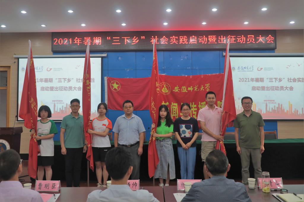 会上,大家一起观看了纪录短片《2021新传先锋在路上》,梁嘉汇报2021年bat365在线中国登录入口暑期社会实践筹备和部署情况,社会实践优秀志愿者代表2018级摄影专业潘志成做了精彩分享,曹明臣就实践的主题与内容作了专门指导,副院长马梅就如何在实践中加强专业能力锻炼作了专门辅导,副院长赵昊老师宣读了2021年校级、院级暑期社会实践重点团队名单,党委书记张师帅做了出征动员讲话,领导老师为校、院级重点团队代表授了队旗。