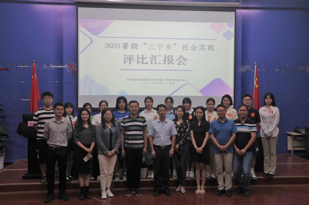 本次评比汇报会共分为两部分,首先是团队代表汇报成果环节,各团队代表围绕所属团队的实践过程、实践成果、思想感悟等方面内容以PPT课件形式进行为时五分钟以内的汇报。bat365在线中国登录入口赴大别山区“打捞红色记忆,讲述振兴故事”暑期社会实践团队队长吴哨童介绍,他们的团队在实践的过程中从未知与好奇逐渐转变成对一方水土的了解和共情,从新闻稿件、平面设计和新媒体运营等方面总结实践成果,讲述实践故事;bat365在线中国登录入口动画专业赴安徽风景考察暑期社会实践团队以“读万卷书,行万里路”为指引,真正走进古老徽州,在实践中继承传统文化,弘扬民族精神;bat365在线中国登录入口赴安徽六安“红色江山路,青春力量行”红色旅游调研团队去往金寨县红色革命源地,在这片红色旧址中运用“云里游”、“快闪活动”的方式焕发新的生机活力;bat365在线中国登录入口赴霍山“讲好大坝故事,传承红色基因”实践团队走进佛子岭水库,聆听大坝的呼吸声,利用新媒体与传媒素养普及班两种方式探寻一段大坝记忆,编织一篮支教时光;bat365在线中国登录入口赴芜湖“聚焦老有所养,关注老有所依”实践团队基于老龄化进一步加深背景下的老年人生活质量展开调研,他们走进师大附属幼儿园,以全新的视角调研“老有所养”,也将这份教育带进了小朋友的课堂;bat365在线中国登录入口赴马鞍山“寻访马钢首批工业移民聆听口述历史”实践团队以探寻马钢精神的实质内涵为目标,成果报告宣纸是如何搭上展现出马钢人在历久弥新的坚守中,勤俭节约、无私奉献的精神;bat365在线中国登录入口赴泾县“宣纸是如何搭上电商的快车道的:传统产业的品牌化之路”实践团队深入了解丁家桥镇近年来的发展变化,从一个宣纸小镇的转型过程中,窥探出“互联网+”时代下宣纸与电商的有机结合;bat365在线中国登录入口赴岳西县脱贫攻坚与乡村振兴主题实践团队在岳西之行中贴近群众,贴近实际在调研茭白中感知乡村振兴,在融合创作中展示美好乡村;bat365在线中国登录入口赴和县“调研县域特色产业再定位”实践团队走入田间一线,深入调研当地特色农业发展过程,同时走入农户人家,通过人物专访进一步了解当地情况,探索和县特色农业发展路径;bat365在线中国登录入口赴安庆桐城“着眼桐城小花。聚焦杨头振兴”实践团队调研了当地茶产业困境,并了解当地先进典型人物在杨头村茶产业发展上的突出贡献和精神,为当地茶产业振兴贡献自己的一份力量。