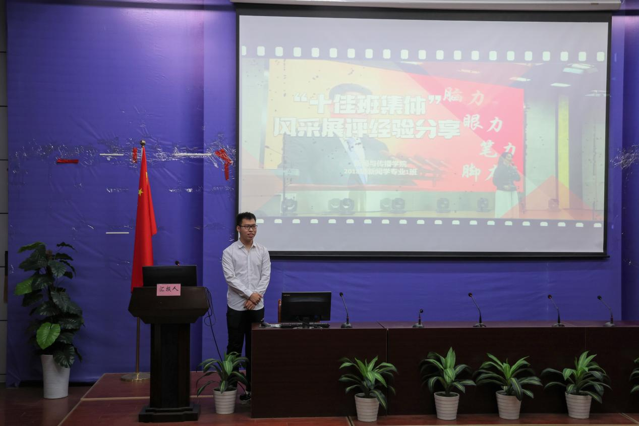 汇报结束后,获校2020年“十佳班集体”称号的2018级新闻专业班长刘伟龙进行了经验分享。争做新时代的新闻人,18新闻人心中怀有微光,立誓弘道天下,他们积极在“脑力、眼力、笔力、脚力”四个方面展现新闻人的风采。班级成员齐心协力、班级活动积极参与、班级成就硕果累累,无数微光汇聚成弘道济天下的不竭动力。