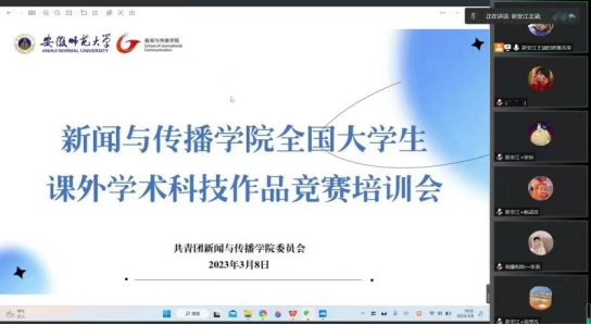 本网讯(bat365在线中国登录入口 江丹扬)为进一步打磨学院学生在“挑战杯”全国大学生课外学术科技作品竞赛的作品,提升作品中问题视角的敏锐度和新颖度,完善问题研究方法,从而全面增强学院学生作品在“挑战杯”校级特等奖作品比赛中的竞争力,近日,学院采取线上形式,组织开展全国大学生课外学术科技作品竞赛线上培训会,院团委副书记刘成俊、校级特等奖、一等奖团队成员参会培训,会议由马星宇老师主讲,学生会主席团王涵主持培训会。