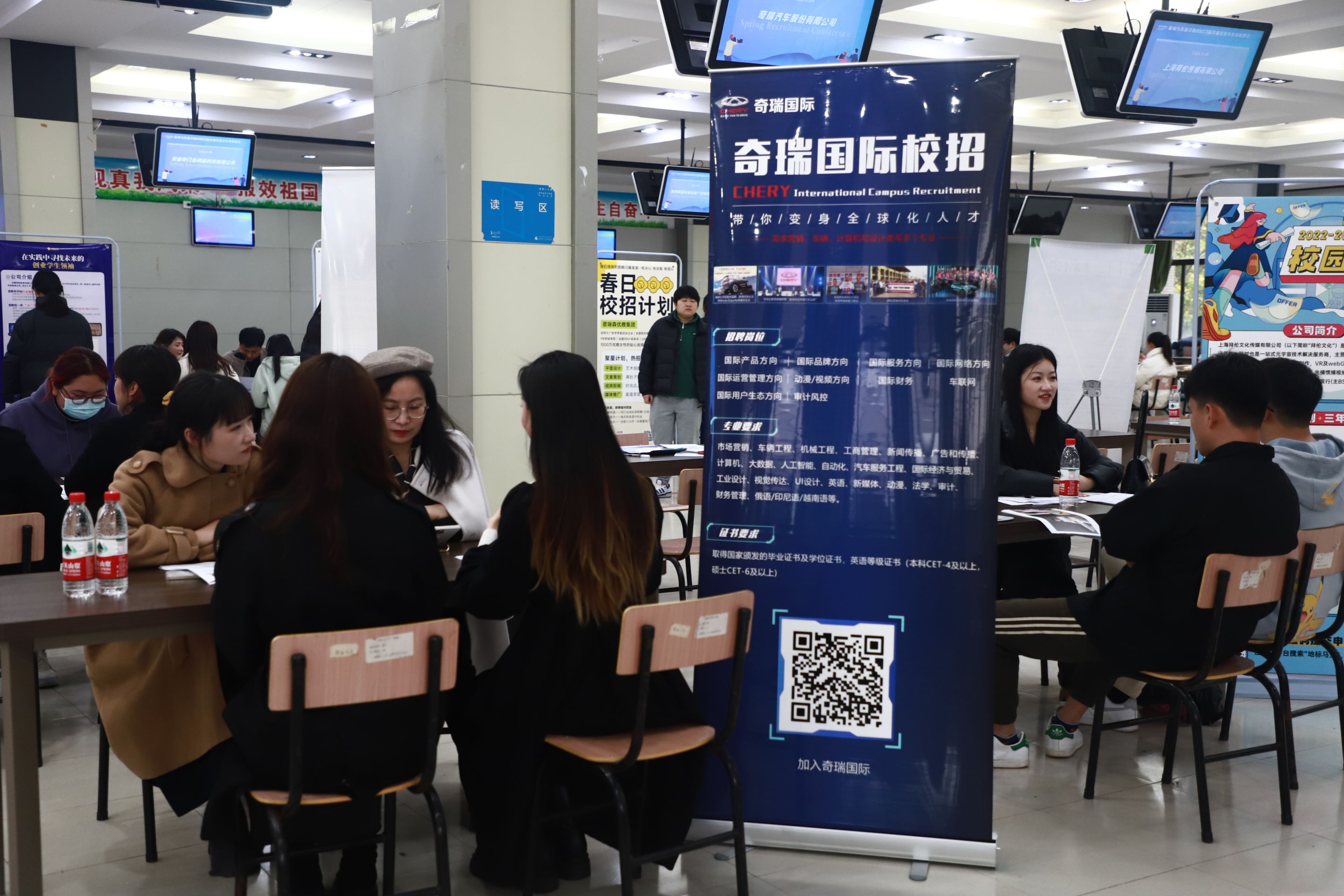 招聘现场人流涌动。不少毕业生带着精心准备的简历穿梭于招聘展位前,并在心仪的用人单位展位前驻足,向招聘负责人咨询用人单位情况,企业招聘负责人也耐心地为他们解答疑问。19级摄影专业的王博宇表示:“平时自己找工作很多都是专业不对口,这次有不少是专门针对我们专业的岗位,我觉得还是非常激动的,希望可以找到自己心仪的岗位。”也有不少同学在短短三个小时内就收到了多家企业的邀约,19级新闻学专业的刘莹莹说:“这次招聘会所涉的岗位种类还是比较丰富的,我目前比较感兴趣的是宣城日报社的官方媒体平台。”除了应届毕业生,招聘现场还有不少大二、大三的同学提前来感受求职氛围。