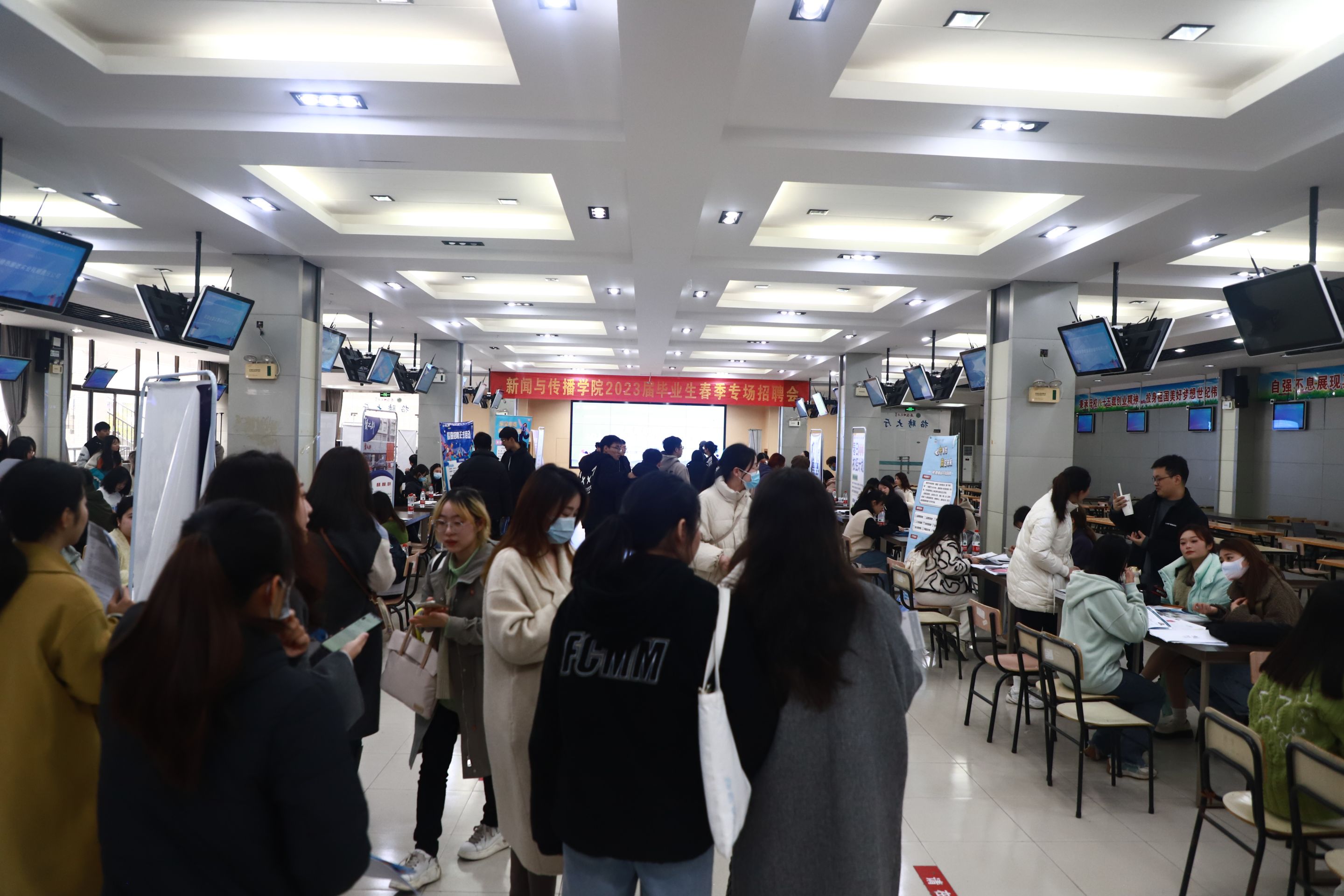 为进一步加强学院毕业生就业工作,落实“高质量充分就业”的要求,3月24日下午,学院2023届毕业生专场招聘会在大学生活动中心二楼招聘大厅举办,并邀请招聘单位代表举办了“访企拓岗”请进来座谈会,提升“访企拓岗”质效。