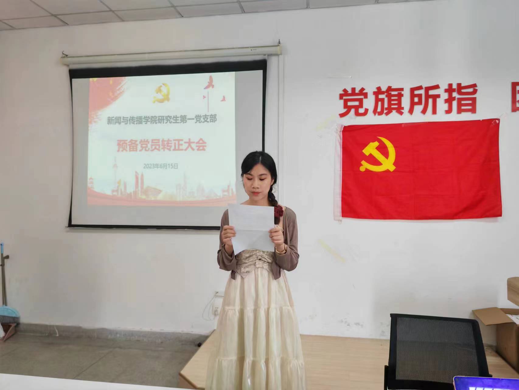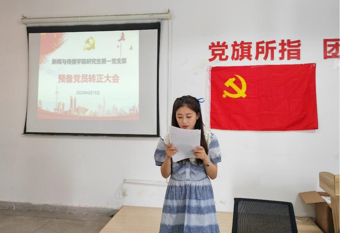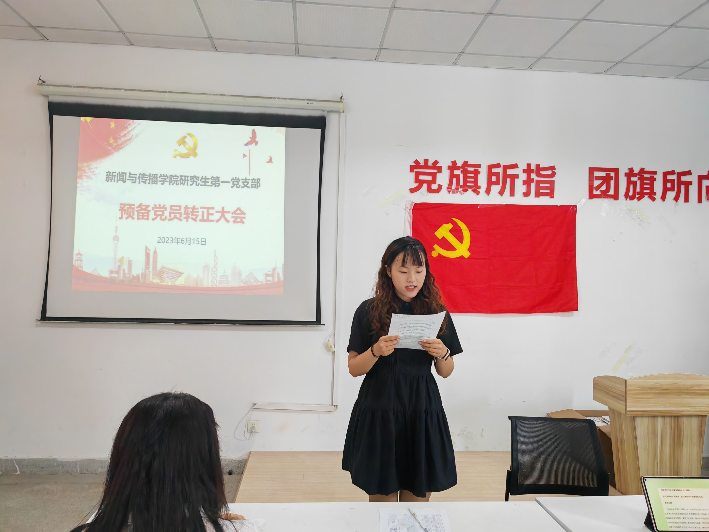2023年6月15日下午,bat365在线中国登录入口研究生第一党支部于学院楼302室组织召开关于赵晴晴、曹甜甜、吴海涛、刘波、范玥、林婷敏六位同学的预备党员转正大会,会议由支部组织委员赵刘萍同志主持。