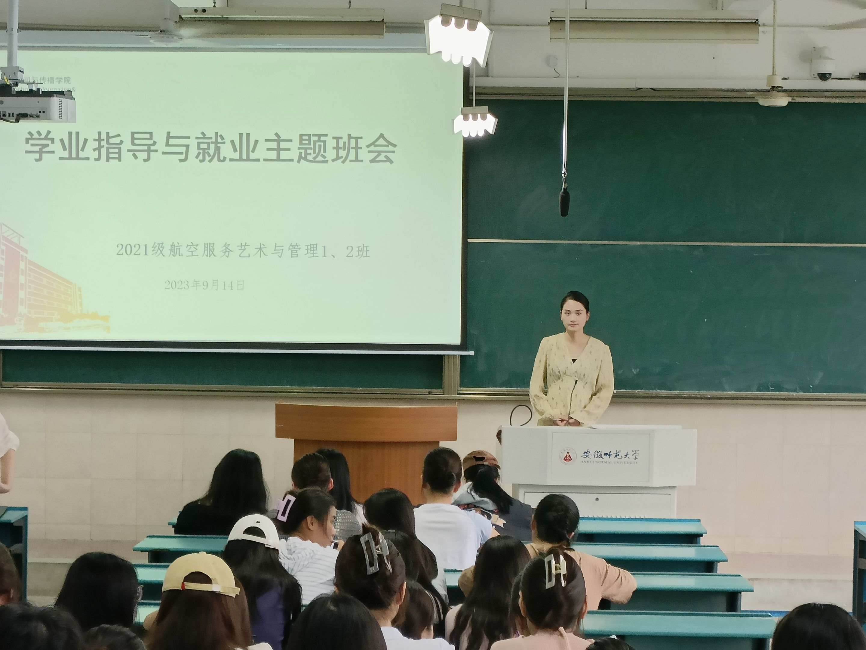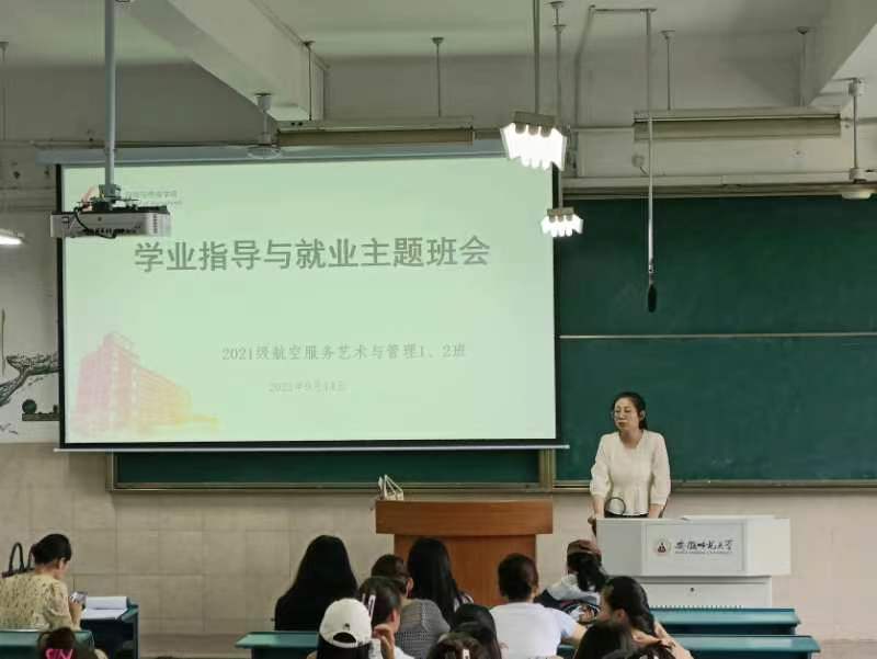 (本网讯文/李春佳 图/刘春燕)9月14日上午,2021级航空服务艺术与管理1、2班全体同学在2050304召开班会,会议由辅导员张雁主持,生活辅导员俞应芬出席。