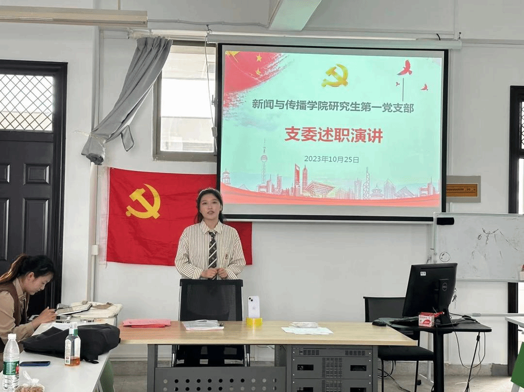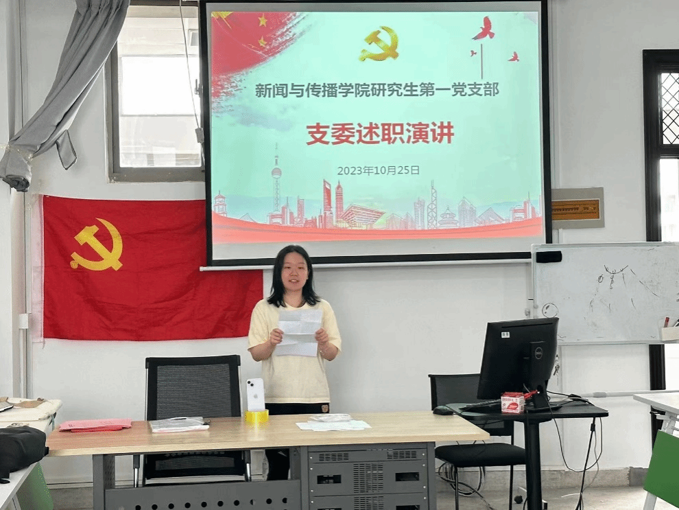 大会在雄壮的国歌声中开始。支部书记葛欣航同志代表上一届党支部委员会作了工作报告:三年以来,支部在学院党委的正确领导下,支委各司其职,紧密团结,每项工作均能落到实处,不仅发挥党支部的战斗堡垒作用以及全体党员的先锋模范带头作用,也提高了支部全体党员的凝聚力、理论学习能力和创造力。主要表现在:一是以学为先,加强党史、马克思主义新闻观等党的基本理论的学习,结合党的二十大精神的学习、贯彻、落实,用新时代党的创新理论武装头脑;二是切实把握理论学习的时代性、实践性,使新闻学真正成为一门以马克思主义为指导的学科。