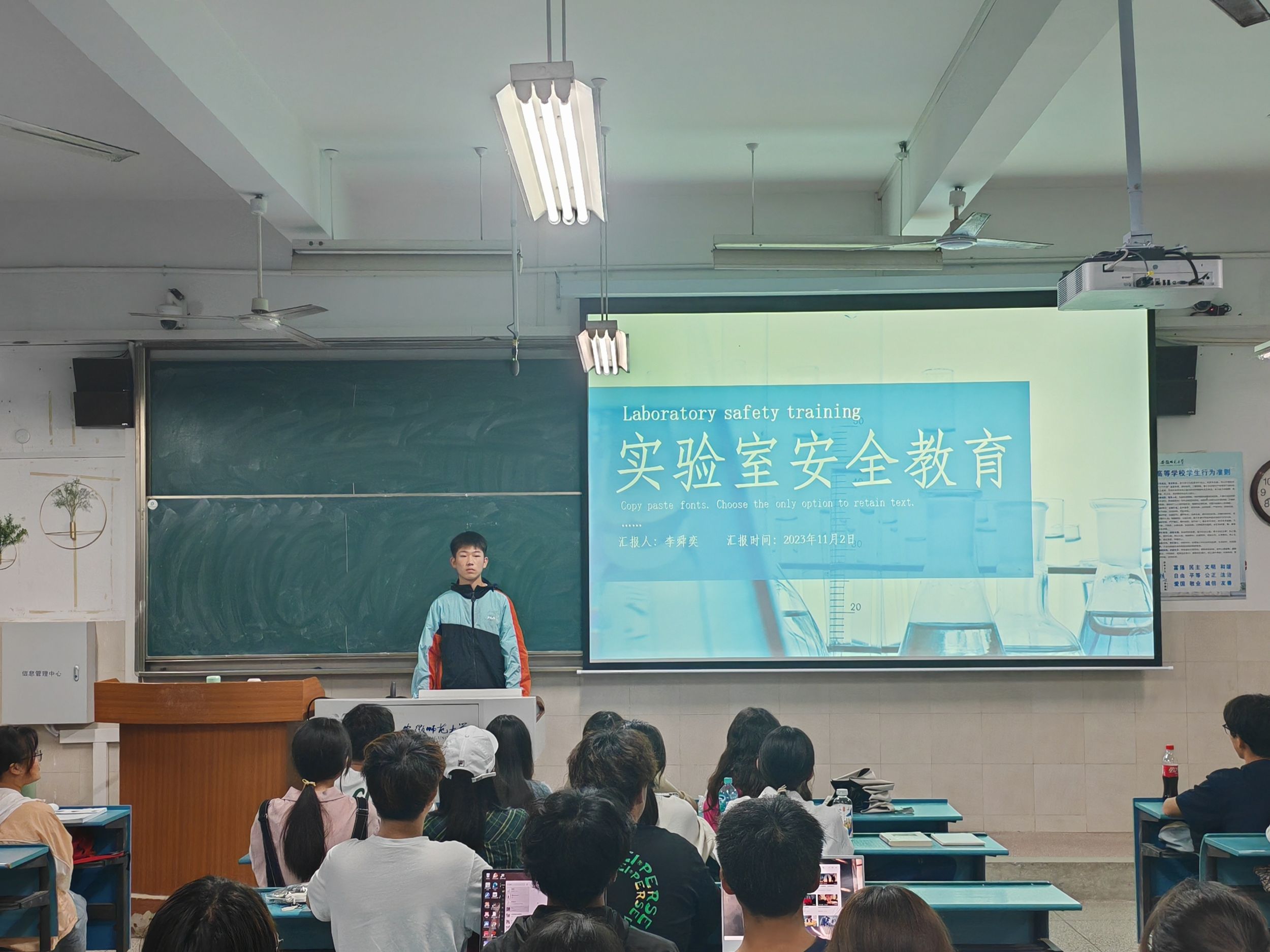 为切实做好新生实验室安全教育,提高新生安全意识,11月2日星期四晚,2023级网络与新媒体专业召开实验室安全教育主题班会,会议由安全委员李舜弈主持,2023级网络与新媒体专业全体同学参会。