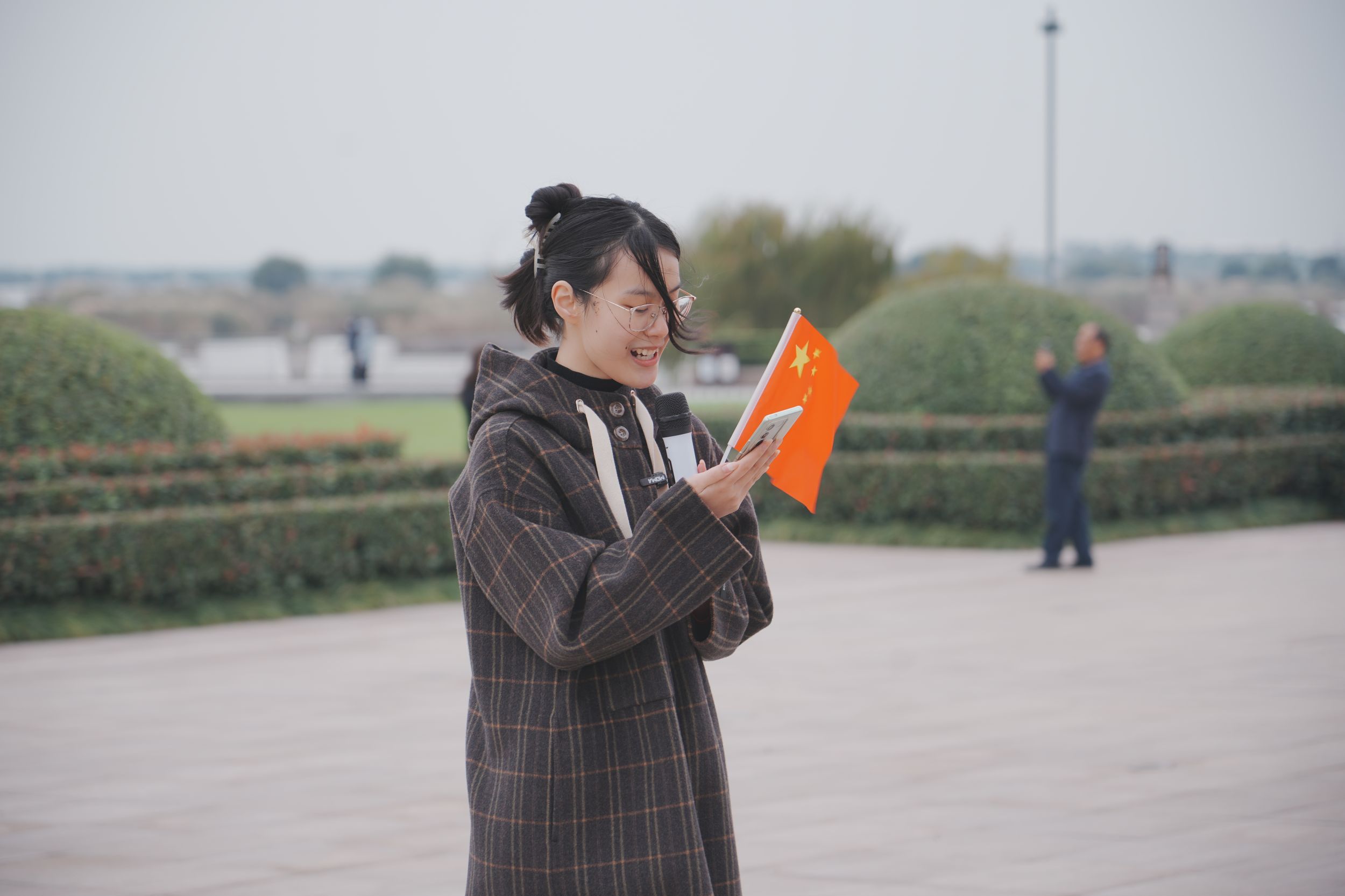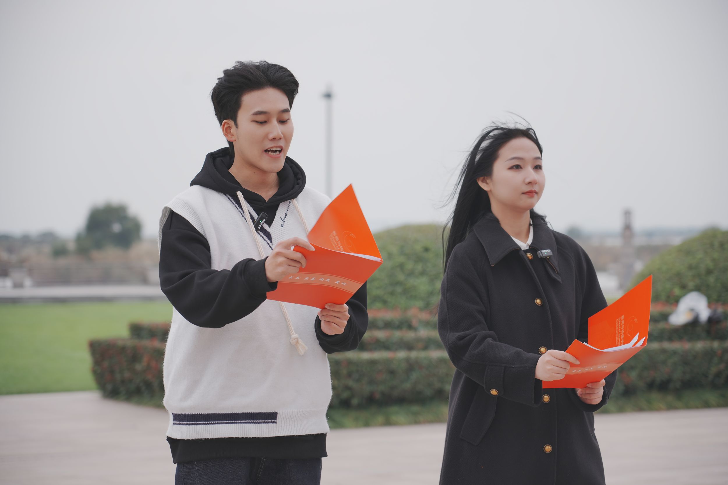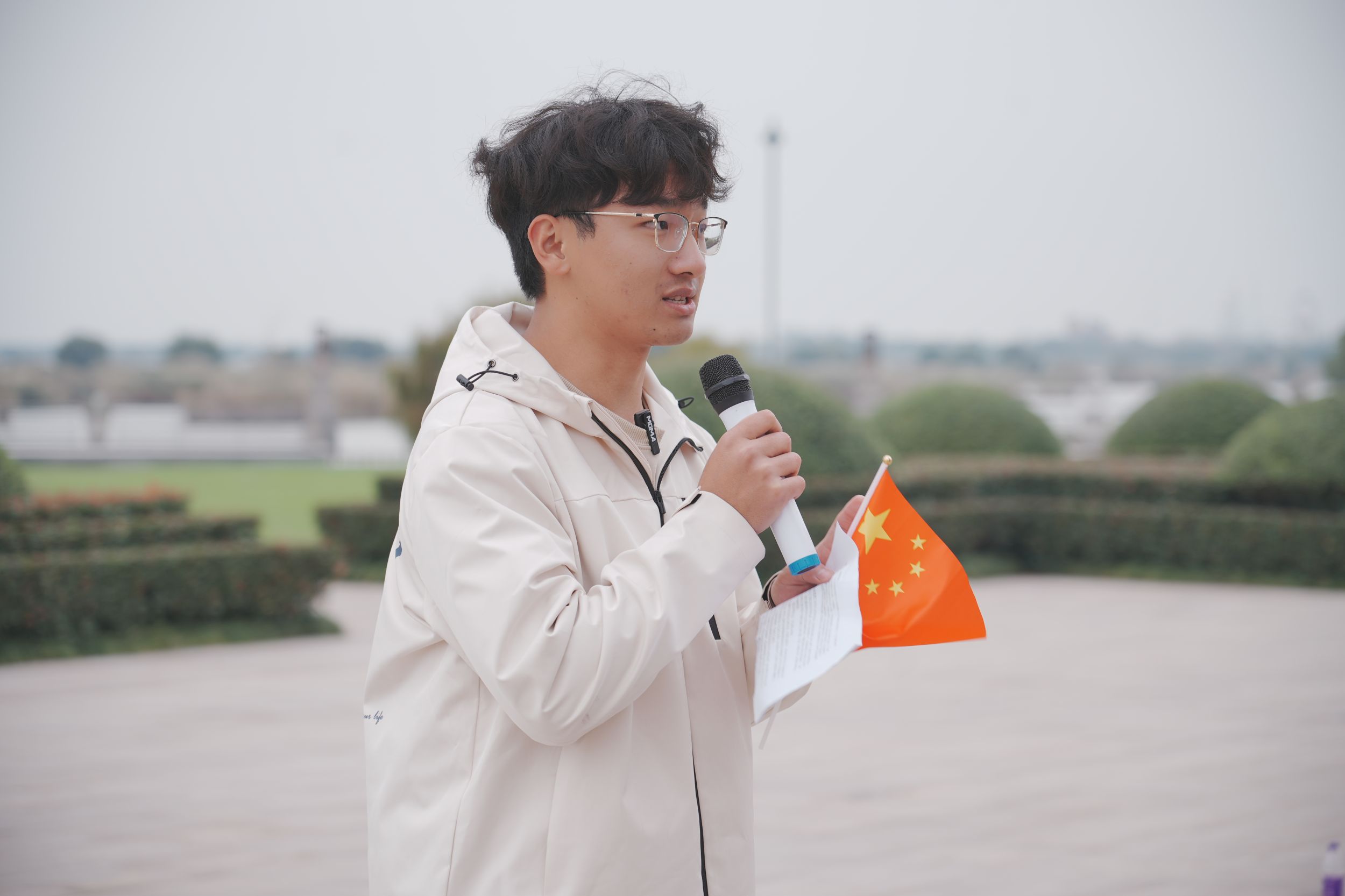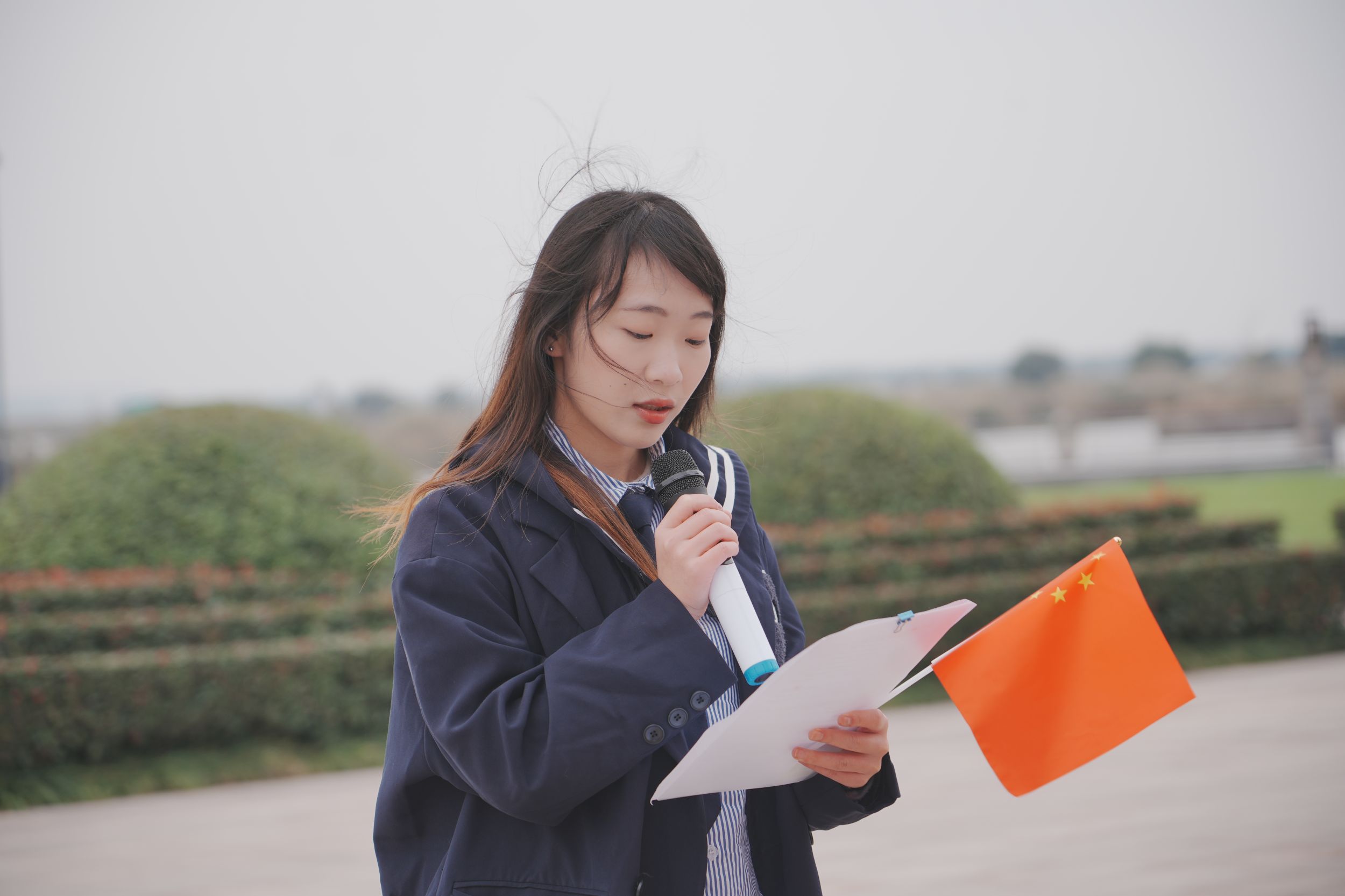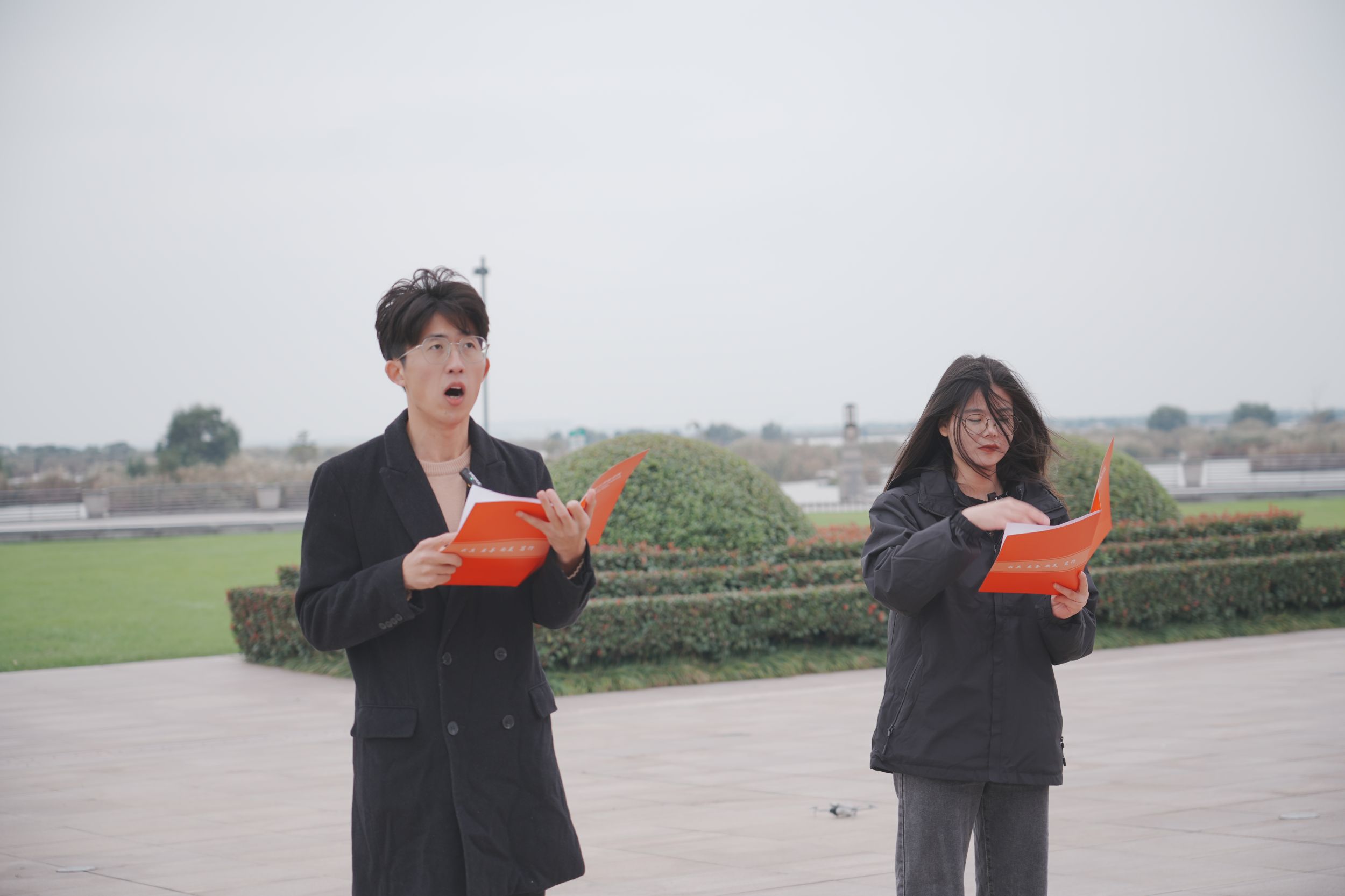 渡江战役纪念馆广场胜利之塔前响起铿锵有力的国歌声,支部全体成员齐唱国歌,洪亮的声音在纪念馆广场上空回响。2021级预备党员播音与主持艺术专业的王孙貊骊、刘思瑶朗诵《七律·人民解放军占领南京》,借专业技能为解放军战士献上一曲赞歌。2021级预备党员代表新闻学专业的李梦云、岳皞伟则带来董万英的《参观合肥渡江战役纪念馆有感》。随后,新播支部党员代表、入党积极分子代表、入党申请人代表共计6名同志发表参观后的交流发言。