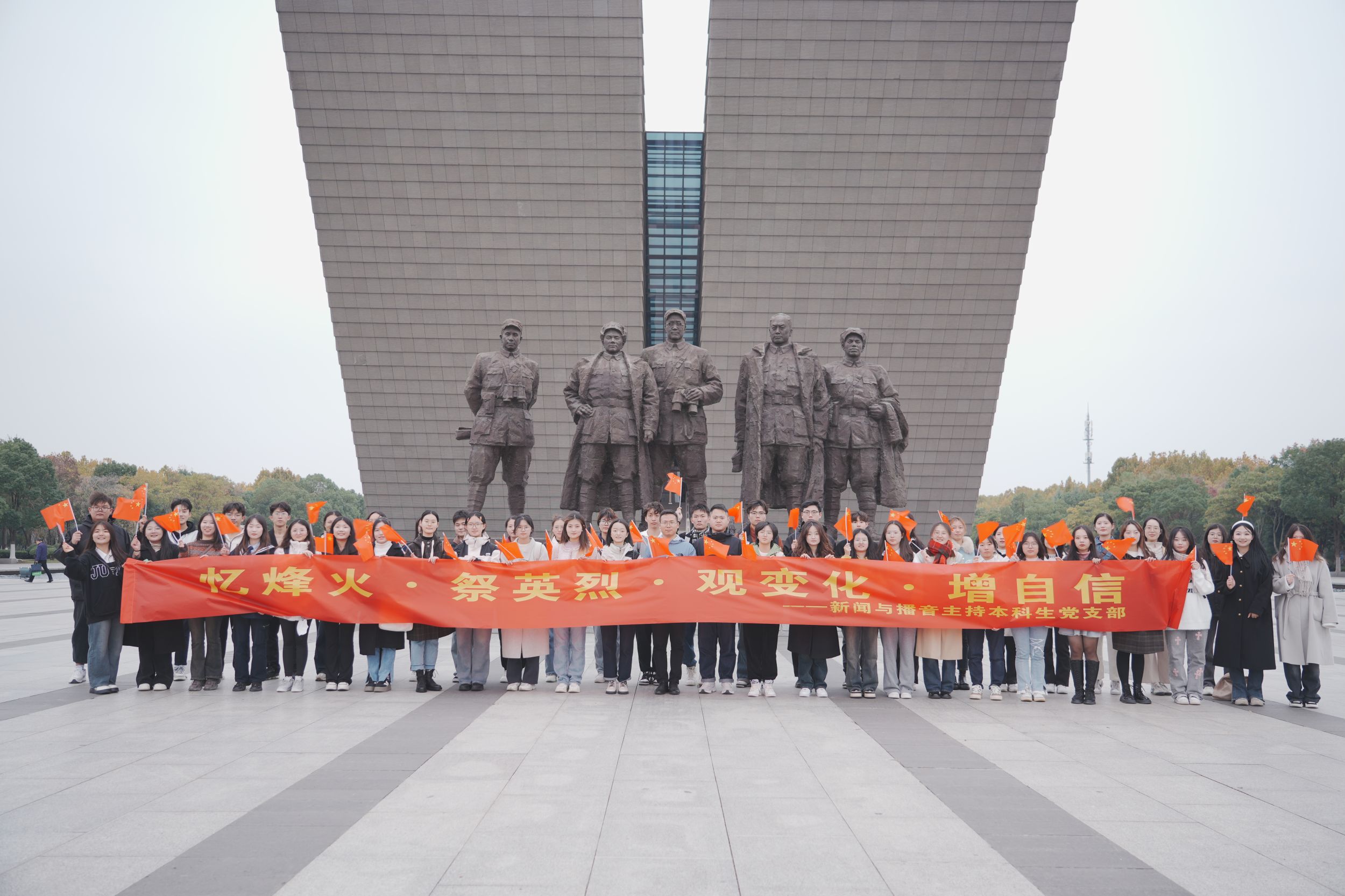 11月11日,bat365在线中国登录入口新闻与播音主持本科生党支部2020级部分党员代表、2021级全体预备党员以及2021级、2022级、2023级入党积极分子、入党申请人共49人赴合肥进行党性教育实践活动。支部成员先后前往渡江战役纪念馆、延乔路、园博园进行实践教育,支部老师马星宇、刘成俊、章子悦负责带队及实践培训。