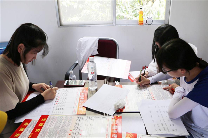 来到燃灯村后,扶贫专干吴慧首先帮助团队简要了解了今天的工作内容。队员们帮助村委在精准帮扶信息牌上录入燃灯村的贫困户信息,并切实准确地熟悉燃灯村扶贫工作的主要内容,以期后续扶贫宣讲工作的顺利展开。蔡君威向团队介绍了宿松县的主要扶贫政策以及隘口乡燃灯村的贫困人口现状以及精准扶贫的工作开展主要内容与开展形式。蔡君威表示,基层工作就要深入基层,“扶贫这项工作是集全县之力,集全县之智。”要想完美落实精准扶贫这项工作,基层工作人员就得干实事。而大学生脱贫攻坚宣讲团队除了宣传扶贫政策之外,了解民情、帮助当地更好地落实政策也是重要的工作内容。
