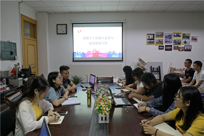 9月9日晚,新传学开展校媒学干媒介素养与校园新闻写作培训会,院团委副书记马星宇担任主讲人,辅导员张雁、刘熠、学生骨干及18级新生代表参会。