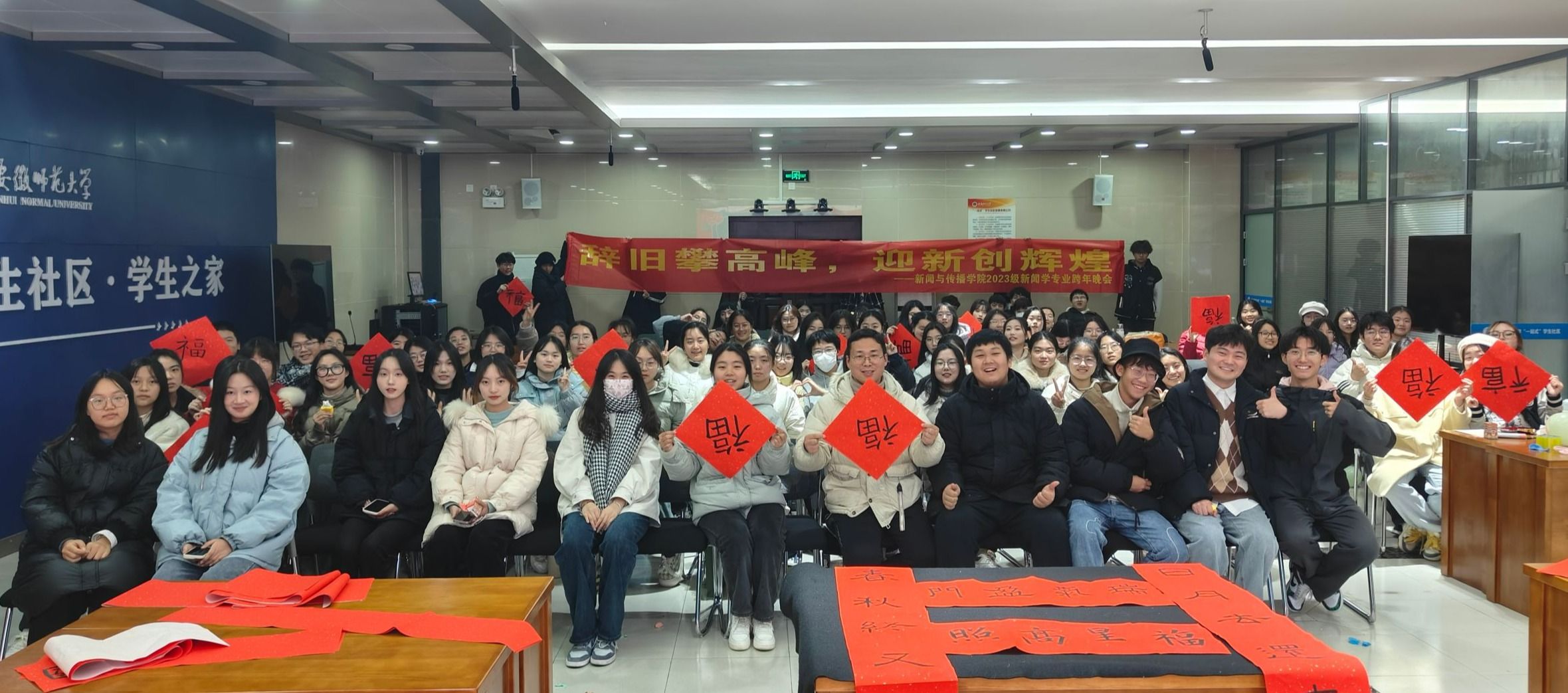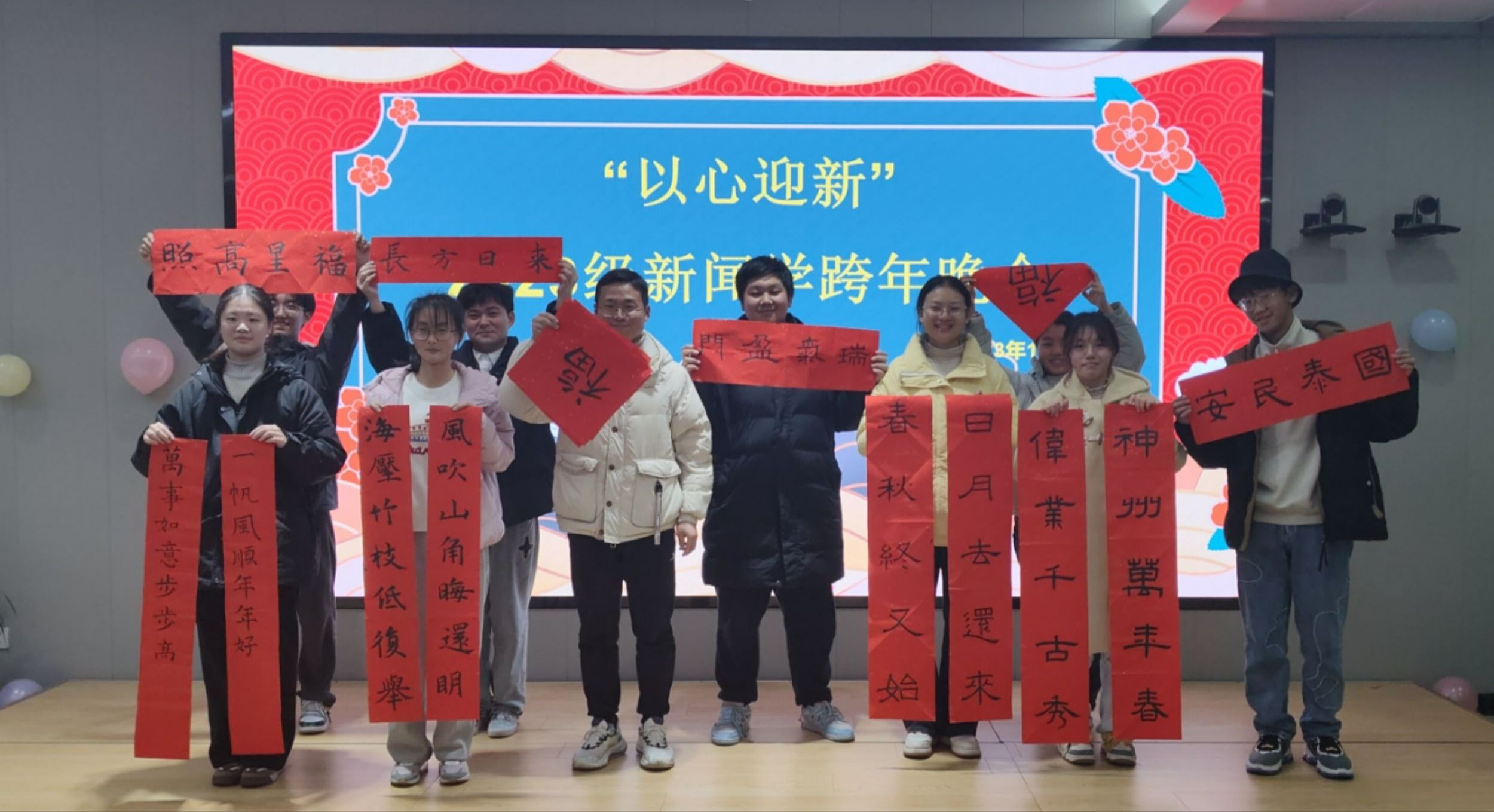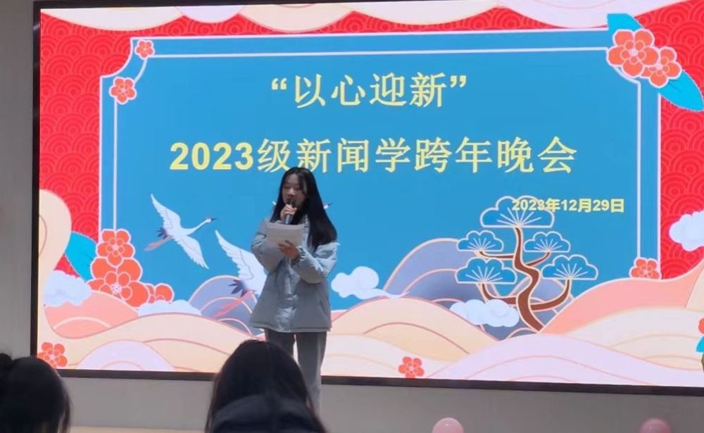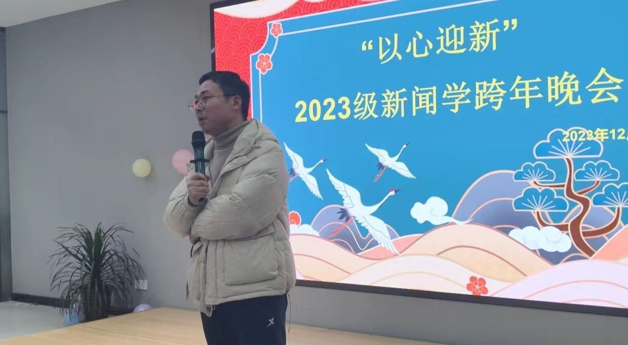 12月29日,2023级新闻学专业举办了以“辞旧攀高峰 迎新创辉煌”为主题的跨年晚会,2023级全体新闻学专业新生以及辅导员马星宇齐聚一站式学生社区共同参加本次活动。