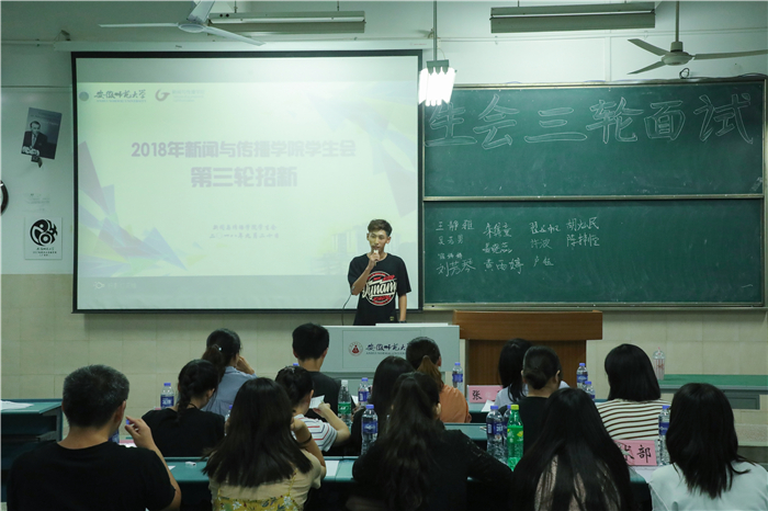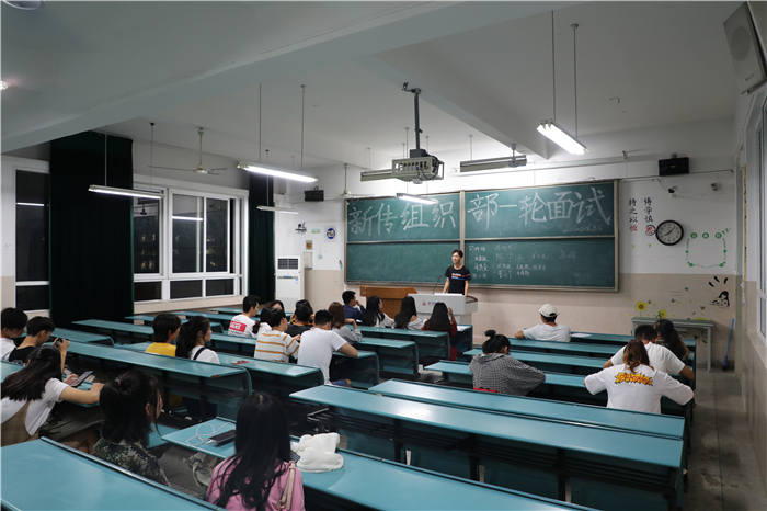 13个部门的首轮面试分别于9月12日、13日在行知楼进行,各部门分管主席和各部门部长都出席到场参与评分。首轮面试主要采用先自我介绍后现场问答的方式,初步了解新生们的任职意愿并观察其态度。面试中,新生们虽稚气未脱但态度诚恳,回答问题时灵活应对,语言流畅。每位参加面试的同学都展现出了积极的精神面貌和向上的工作态度。