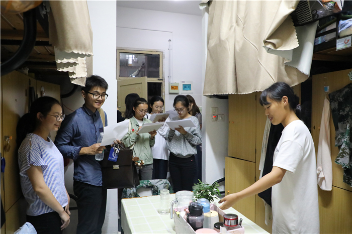 为丰富学生校园生活,培养学生良好的生活习惯,营造温馨整洁的生活环境,院团委学生会生活部主办了2018年新生寝室设计大赛。9月28日晚大赛正式举行,学院部分专兼职辅导员及院团委学生会部分骨干参观了学生寝室并担任评委评分。