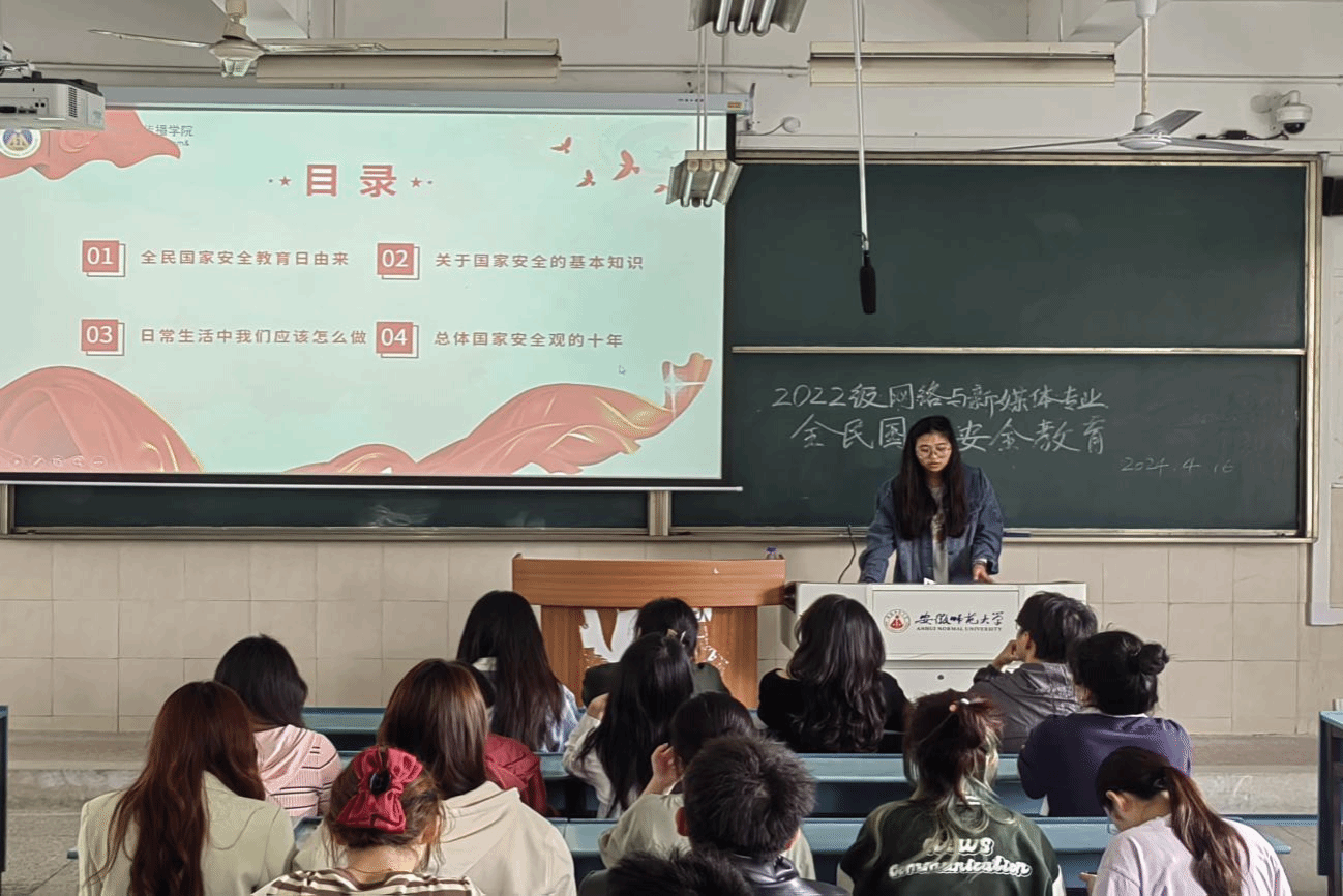 为贯彻落实总体国家安全观,增强国家安全意识,2024年4月16日,2022级网络与新媒体专业召开全民国家安全教育思政学习会,本次会议由思政委员马文雅主持,2022级网络与新媒体专业全体同学参会。