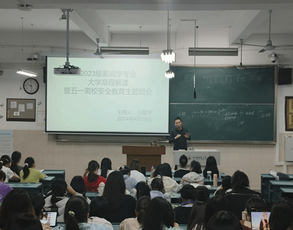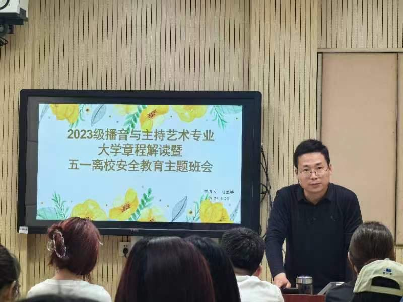 为提升学生对学校的了解,加强五一安全教育,4月29日、30日,2023级新闻、动画、播音与主持艺术专业分别召开大学章程解读暨五一离校安全教育主题班会。会议由辅导员马星宇主持,23级新动播三个专业全体学生参加。