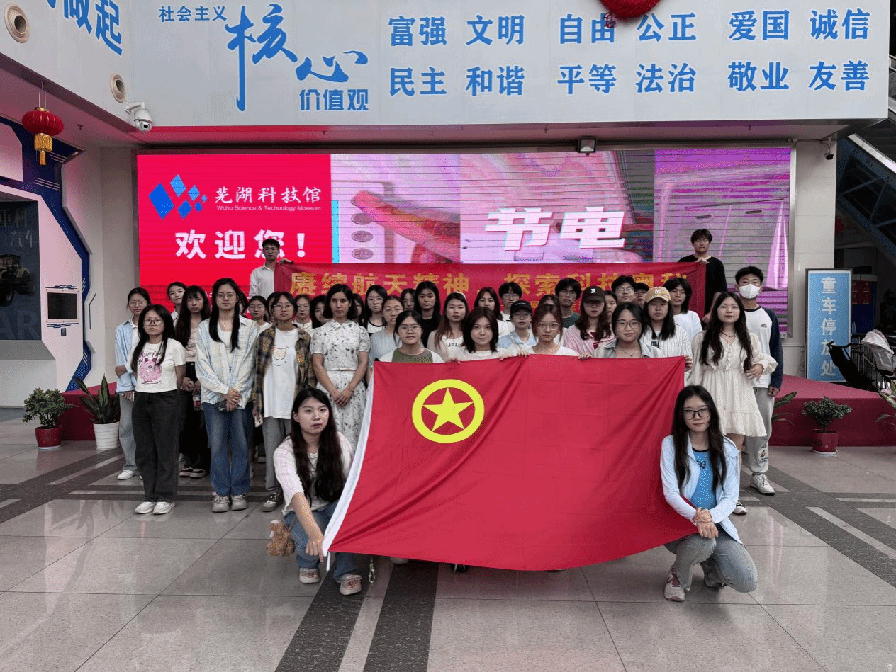 在芜湖科技馆场馆内,团支书王一彤领学景海鹏、朱杨柱和桂海潮三位航天员的英雄事迹,三位航天员以“胸有凌云志,无高不可攀”的奋斗精神,实现了自己的航天梦,为我国航天事业谱写了壮丽篇章!随后,科技馆解说员向同学们介绍科技馆展区,解说员通过互动式讲解,激发同学们的兴趣和好奇心,引导同学们积极参与科学实验和互动体验,使参观过程更加生动有趣。最后,同学们在科技馆内自由参观,感受先进科技的力量,体会中国航天航空事业的发展,感受历代航天人勇于挑战,敢于创新的精神,正是他们突破了一个又一个关键技术,使得我国航天事业实现了从无到有、从有到强的华丽蜕变!