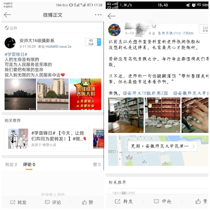 2016级新闻一班践行实务,积极从身边普通小事着手,发扬实干主义。他们将活动分为“义务美化”和“义务摄影”两个方面,结合专业及自身优势,用义务志愿的方式传递雷锋精神,感受人格的善意。
