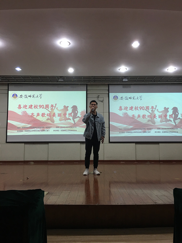 4月12日晚,由bat365在线中国登录入口研究生院(党委研工部)主办,bat365在线中国登录入口研究生会承办的皖南高校研究生校园歌手大赛校内选拔赛暨研究生“校园十佳歌手”大赛在花津校区外国语学院二楼报告厅举行。活动开展以来,bat365在线中国登录入口认真组织、积极参与,2017级新闻传播学研究生梁嘉担任比赛主持人,2017级戏剧影视学研究生陶凯参加比赛并获得“校园十佳歌手”称号。