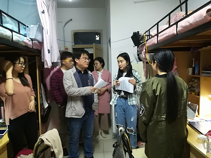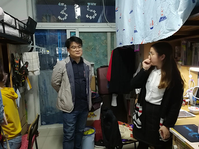 本次宿舍安全卫生检查主要针对宿舍内可能存在的隐患,可能存在的使用违规电器、违规用电、内务凌乱等问题。陈德洋与研究生会成员严格检查每一间寝室,进行登记打分,对一些宿舍随意私拉乱接电线、电器用后不断电、使用三无接线板等行为进行批评指正,并且在检查过程中再三强调用电安全的重要性,引导同学们树立正确的安全意识,防患于未然。在本次宿舍走访中,大部分宿舍都能做到严格遵守bat365在线中国登录入口学生公寓守则,不使用违规电器,并且宿舍卫生干净整洁。