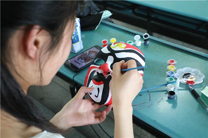 本次活动于下午两点正式开始,活动主办方心理健康部准备了颜料、画笔、调色盘及白色脸谱供选手发挥创意,并要求选手在40分钟之内完成创作。活动一开始选手们就沉浸到自己的创作中,或拿出事先找好的脸谱样本临摹、或时不时停下笔来寻找灵感。简单的两支画笔将红、黄、蓝、绿、白和黑的颜料涂上脸谱,一会儿白色的脸谱上就多了蜘蛛侠、孙悟空、敷粉戏面、红蓝武脸的形象。“粉墨春秋脸上描,风雷电闪绮纹飙。红黄蓝紫镌神圣,白绿灰银画鬼妖。”当传统遇上现代,当古典遇上创新,选手和国粹京剧中的脸谱擦出了别样火花,比赛结束后选手们和自己的作品进行了合影留念。