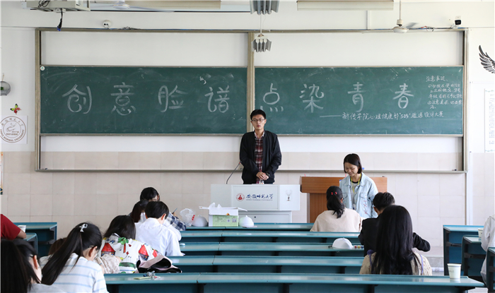 活力青春由色彩点亮,趣味生活用创意装饰。5月9日下午,bat365在线中国登录入口心理健康月系列活动的首个活动——脸谱设计大赛于行知楼2050304和2050302教室顺利开展。本次活动由院学生会心理健康部策划举办,院15、16、17级各专业同学都积极报名参与其中。院团委学生会副主席曹寒冰、宣智丽及17级心理健康委员代表担任了本次活动的评委。