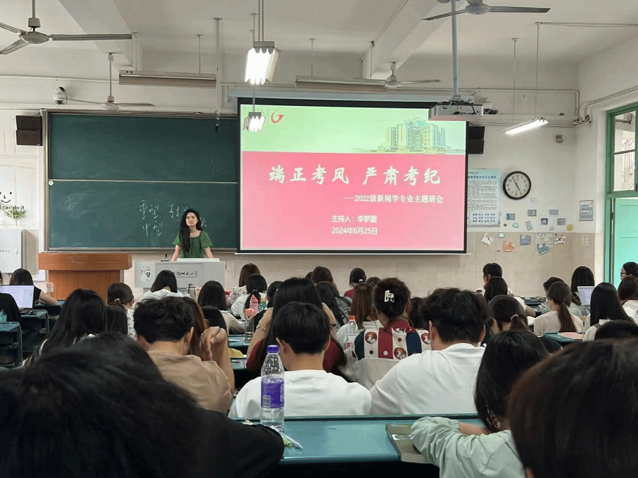 为落实护航举措,加强考风考纪教育,提高学生安全意识,6月25日,2022级新广网播四个专业的全体同学在辅导员李梦圆的带领下开展考风考纪暨安全离校主题班会。本次班会旨在进一步强化学生的诚信意识,端正考试态度,并确保学生假期顺利离校、平安回家。