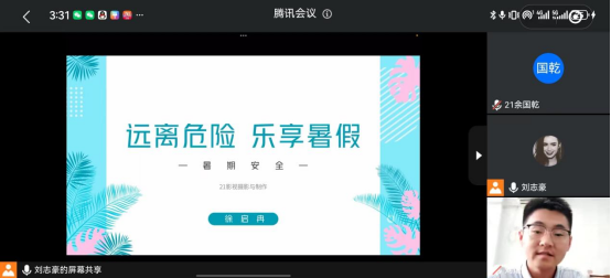 为确保学生实习和假期安全,2021级影视摄影与制作专业于2024年6月27日召开线上班会,学院党委副书记吴青山、辅导员刘熠、2021级影制班全体同学参会。