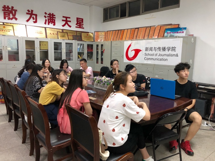 会议伊始,新闻组组长陈皖皖对策划案内容及思路进行了介绍。本次策划案由团队部分成员分工完成,策划案调研部分内容主要根据十九大报告提出的乡村振兴战略,确认聚焦于休宁县祖源村,并以板桥乡为支撑,从生态、经济、文化等几方面深入挖掘乡村振兴战略的实施。另一方面,团队将开展传媒素养普及培训班,助力乡村教育振兴。陈皖皖还对策划案的行程安排与成果展示两个模块的空缺进行了解释,并表示会在接下来的进程中进行添加完善。随后,余梦雅老师对策划案部分内容提出了疑问,陈皖皖与洪新智对其进行了详细的解答。