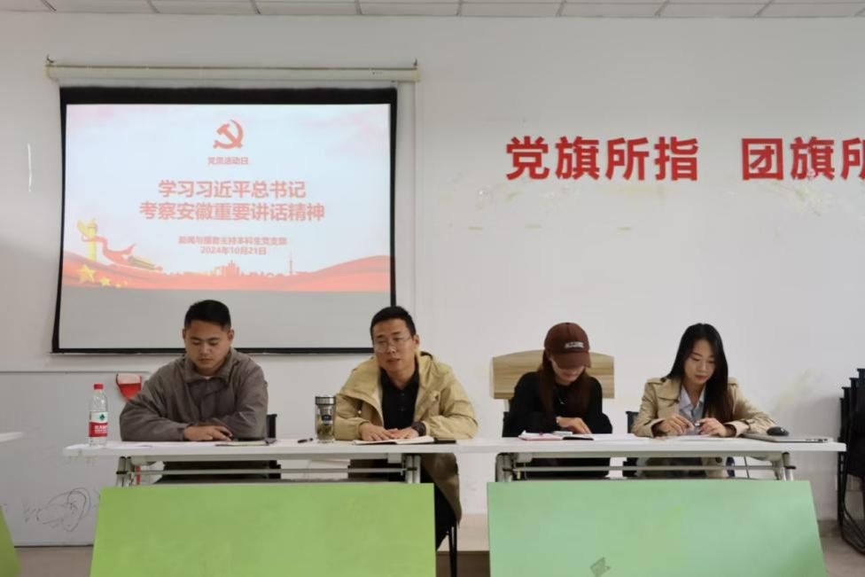 10月21日上午,新闻与播音主持本科生党支部在学院三楼会议室召开支部大会,集中学习习近平总书记考察安徽重要讲话精神,研究讨论“群众推优”工作。会议由支部书记马星宇主持,支部全体在校党员和部分2022级、2023级入党积极分子参加了此次会议。