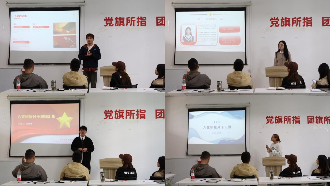 集中学习研讨后,支部大会具体讨论马宇硕、张佳源、王光甫、陈晶晶等四位群众确立为入党积极分子事宜。22级新闻陈晶晶、23级新闻马宇硕、王光甫、张佳源依次从个人经历、对党的认识、学习和工作表现等进行个人汇报,对其了解的支委作了补充发言,支部正式党员对以上4名同学是否列为入党积极分子逐一进行了投票,最终全票通过同意列为入党积极分子,并要求按有关程序做好建档工作。