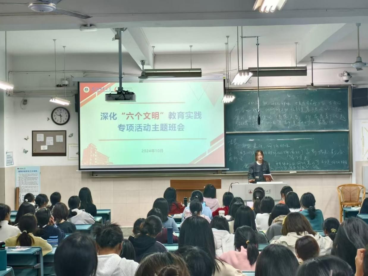 10月29日晚,2024级新闻学专业深入学习“六个文明”的教育实践专项活动主题班会在2050302教室成功举办。本次班会由24级新闻学辅导员郭锦怡老师主持,2024级新闻学专业全体学生参会。
