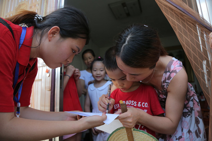 经过队员们的共同努力,招生工作在下午取得丰硕成果。招生数量上进展迅速,并保证了招生质量,全队队员十分振奋。这个暑假,新传学子将继续为城乡留守儿童接力,在爱心接力中坚守责任与担当。(文/王璐妍 图/鲁帆)